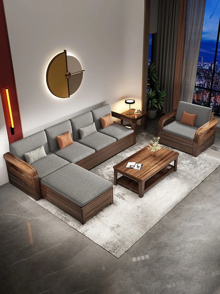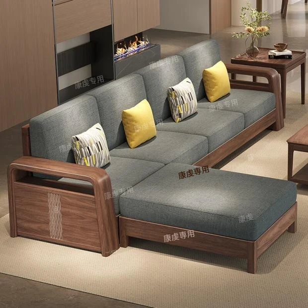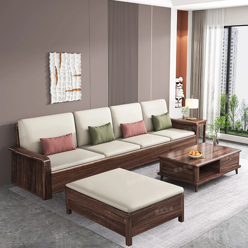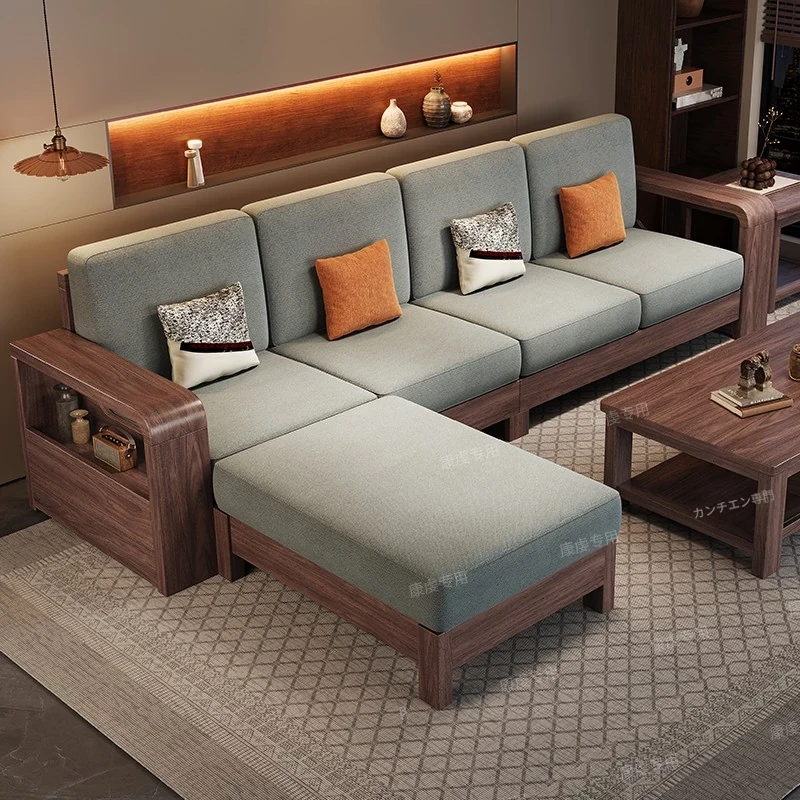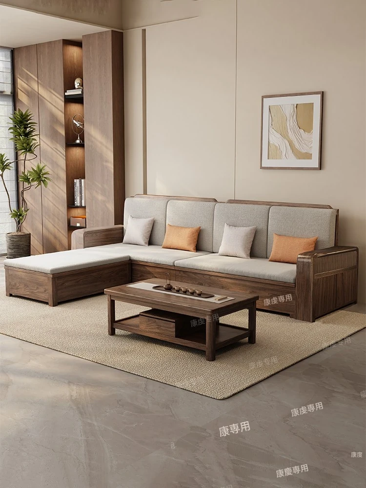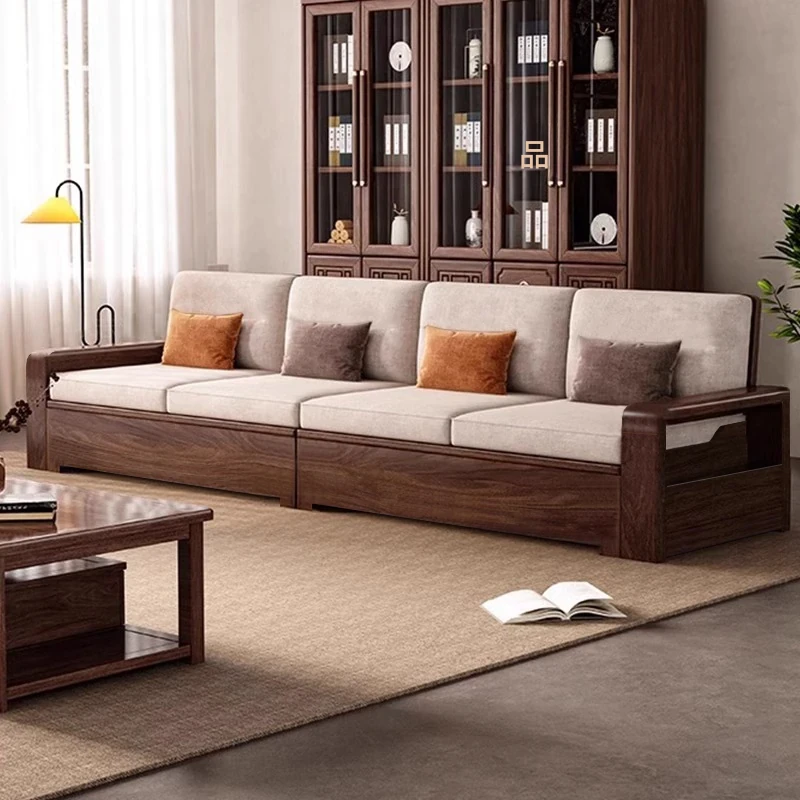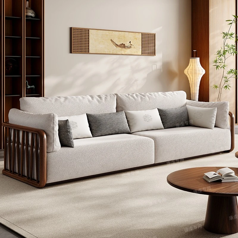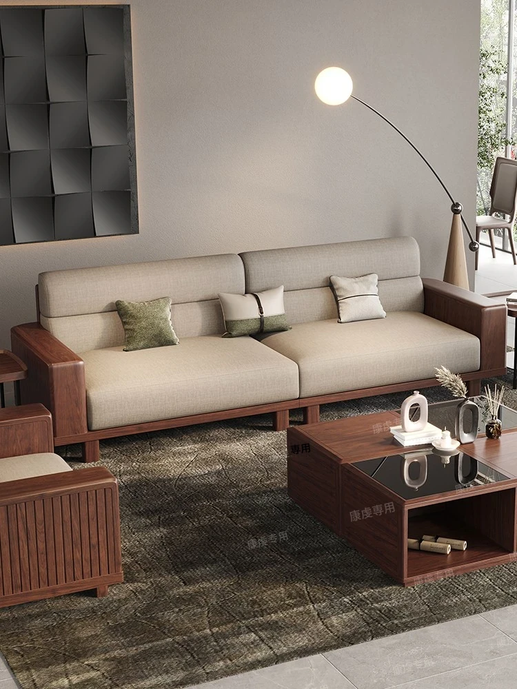 新中式デザインのウォールナット無垢材ソファセット - モダンでシンプル、リビングにぴったりな布張りソファ。快適さとスタイルを兼ね備えた、あなたの家に最適な選択です!