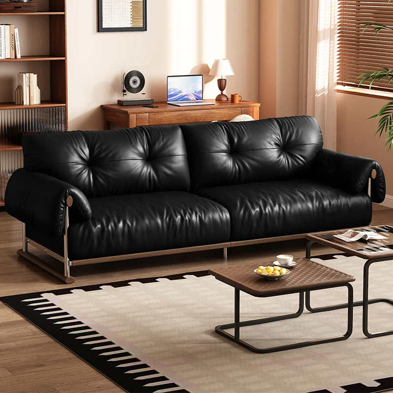 南米産ブラックウォールナット無垢材ソファセット|小型住宅や別荘に最適!リビングルームにぴったりな直排タイプの3人掛け合皮ソファ。高級感と快適さを両立したデザインで、居心地の良い空間を演出します。