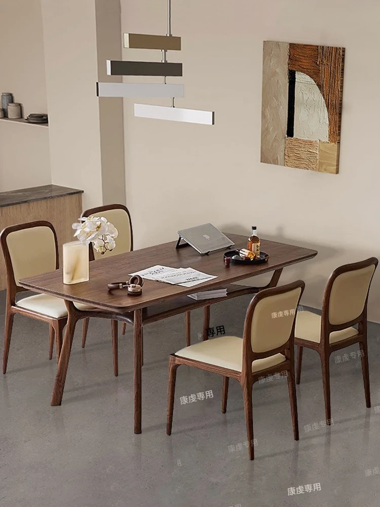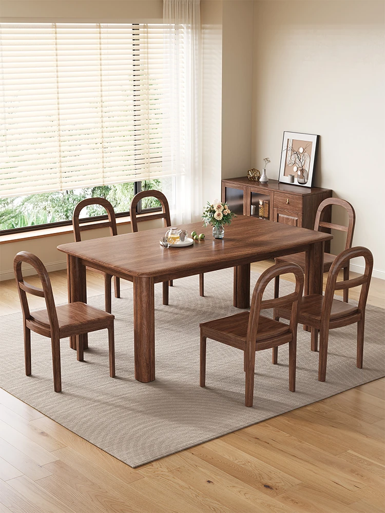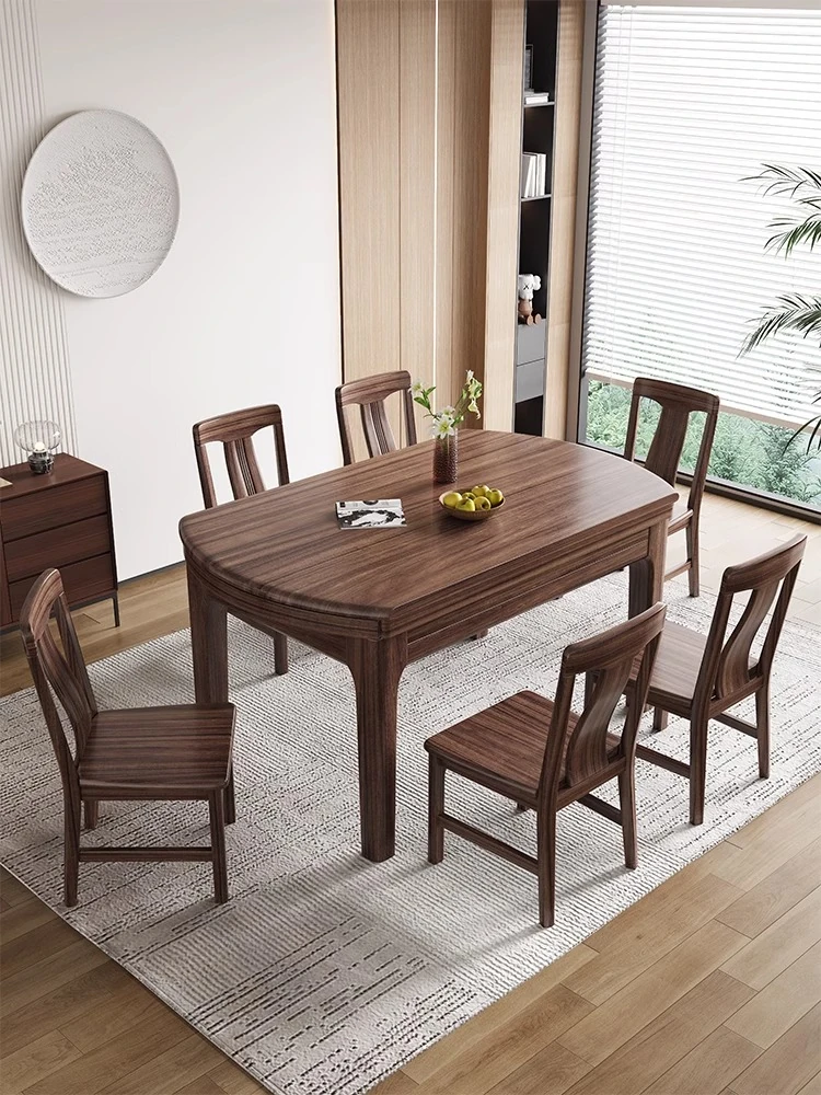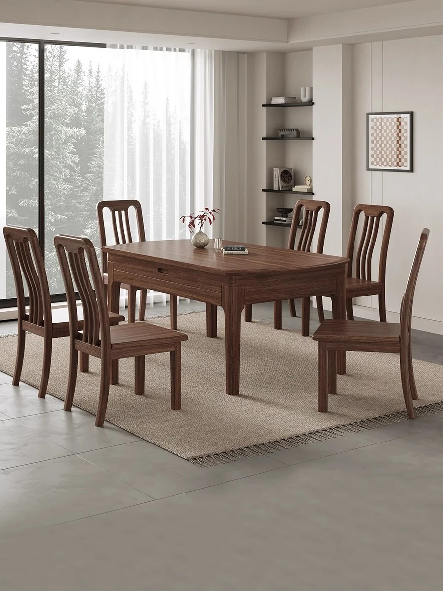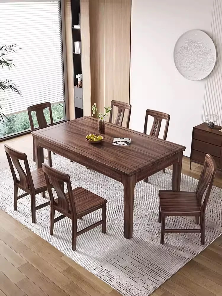 新中式デザインの無垢材ダイニングテーブル|モダンでシンプルなブラックウォールナット製|リビングにぴったりな長方形の食卓|家族や友人との楽しい食事の時間を演出します!