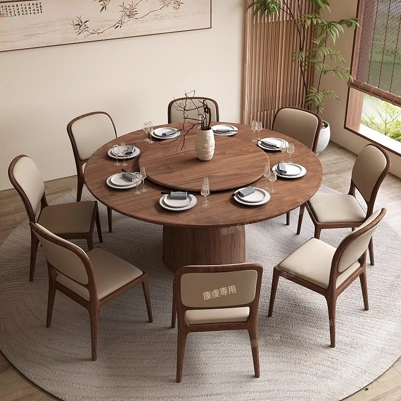 高級ブラックウォールナット無垢材使用!おしゃれな丸型ダイニングテーブル。家庭用、リビングやホテルにぴったりの大きな食卓で、心地よい食事のひとときを提供します。