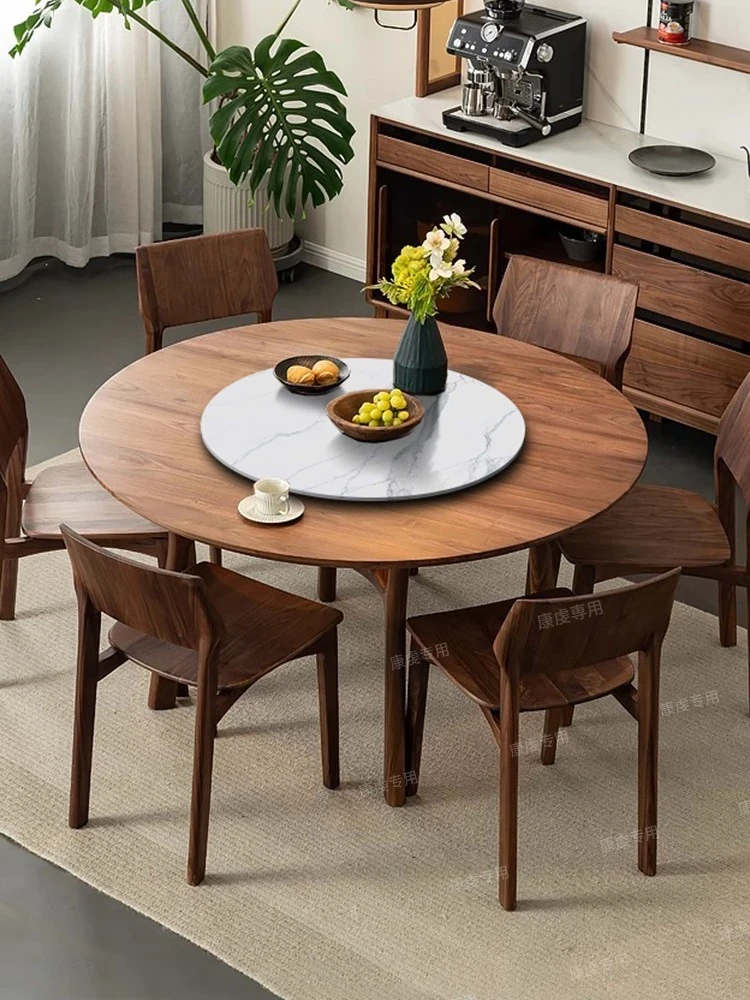 贅沢なブラックウォールナット無垢材ダイニングテーブル - 家庭用ラウンドテーブル、10人用、回転式プレート付きで食事が楽しくなる!高品質の全無垢材で、温かみのあるデザインが魅力的です。
