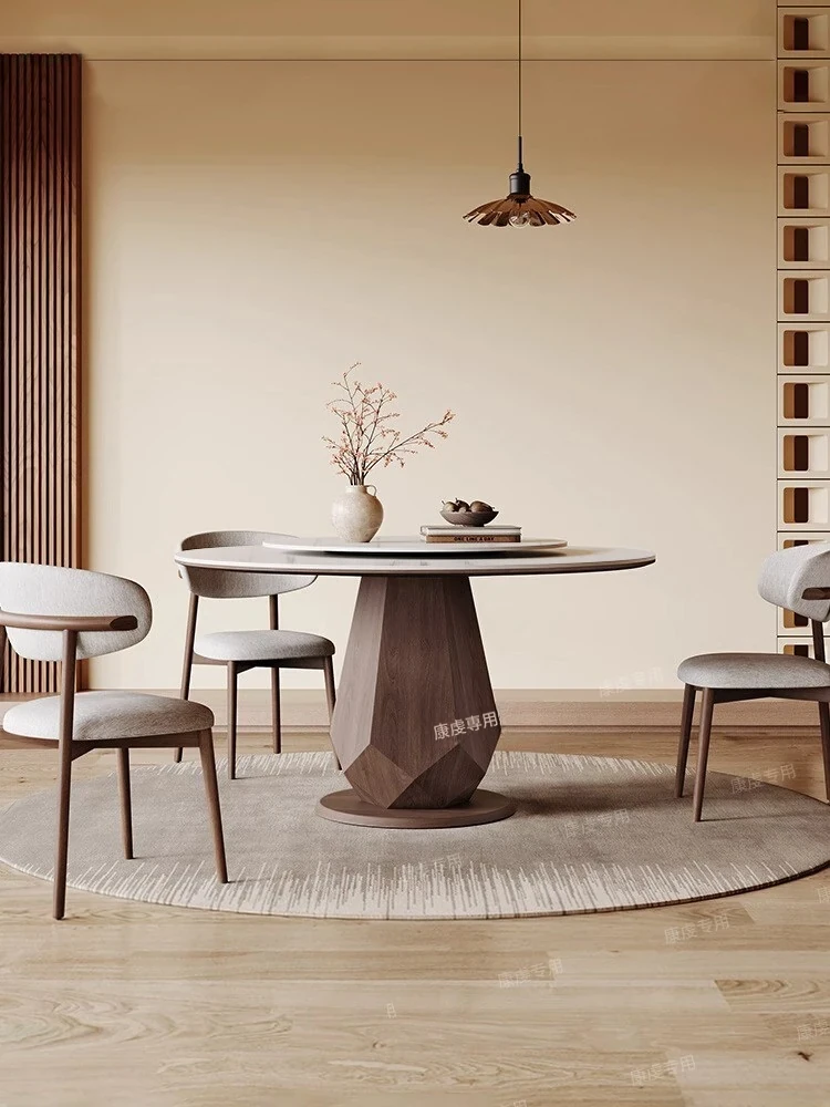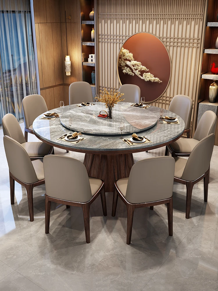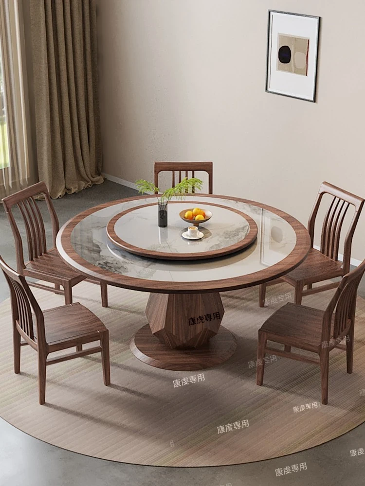 新中式ウッド製ウッディテーブル|高級感漂う2m円形岩板ダイニングテーブル|10人用|家庭やレストランに最適!おしゃれで機能的な食卓をお楽しみください。