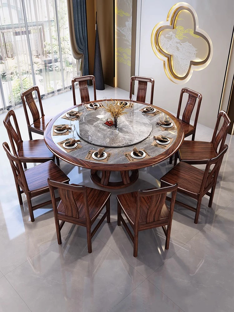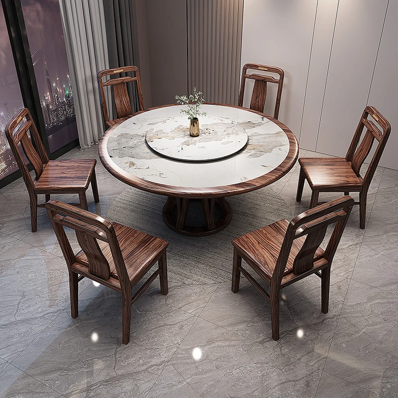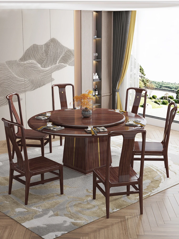 新中式ウッディブラックウッド製大丸テーブル&チェアセット - モダンでシンプルなデザイン、回転式で使いやすく、家族団らんにぴったりな食卓家具!