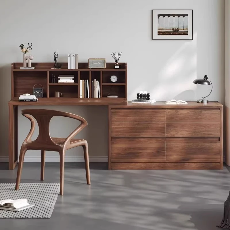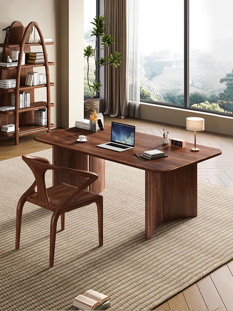 モダンでシンプルなブラックウォールナット製デスク - 学習・オフィスに最適な一体型デザイン!軽やかな高級感漂う中式スタイルの本格的な無垢材パソコンデスク。あなたの作業空間を洗練された雰囲気に!