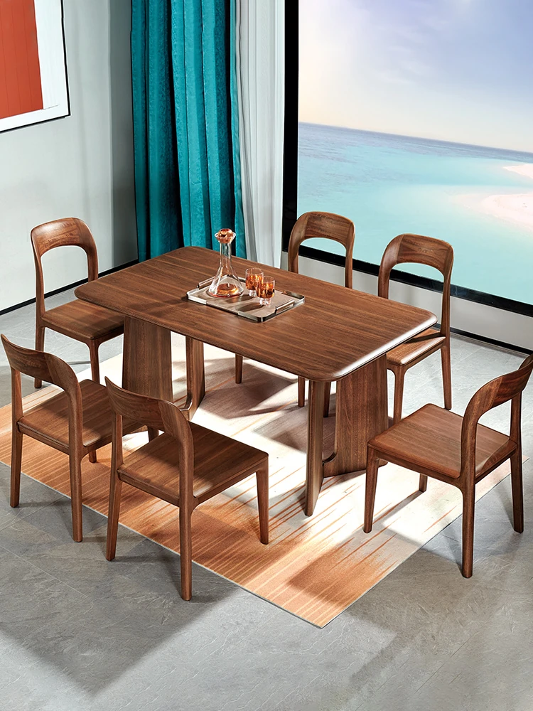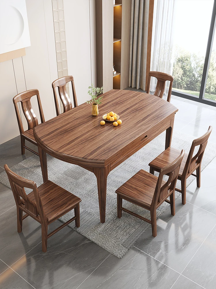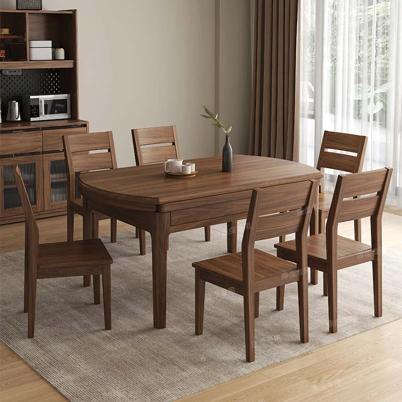 新中式ブラックウォールナット無垢材ダイニングテーブル&チェアセット モダンでシンプルなデザイン、リビングに最適!丸型・四角型の2WAY仕様で、家族団らんやおもてなしにもぴったりです!