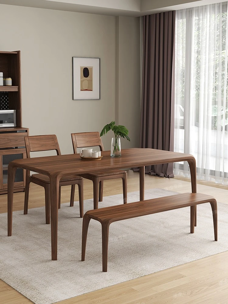 レトロデザインの無垢材ダイニングテーブル!小型住宅にぴったりな長方形の食卓セット。高級ブラックウォールナット製。スタイリッシュで温かみのある雰囲気を演出し、家族や友人との素敵な食事時間をお楽しみください!