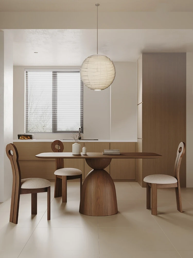新中式スタイルのウ木無垢材ダイニングテーブル|モダンでシンプルな高級感溢れる食卓|全無垢材使用のプレミアムレストラン家具セット