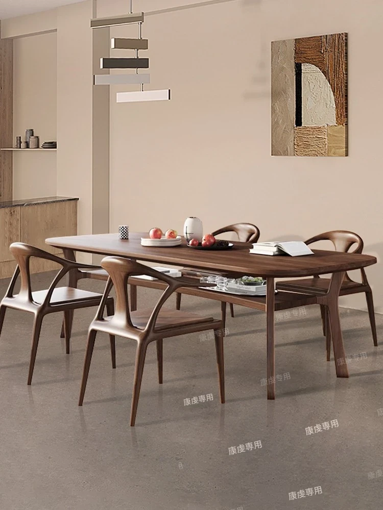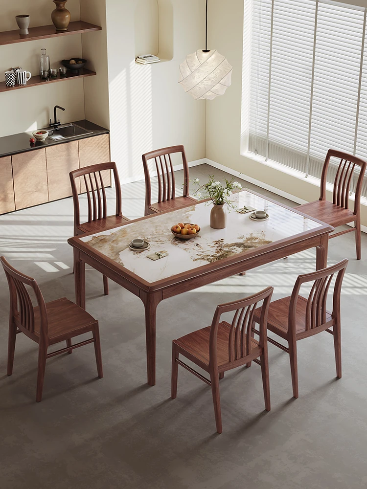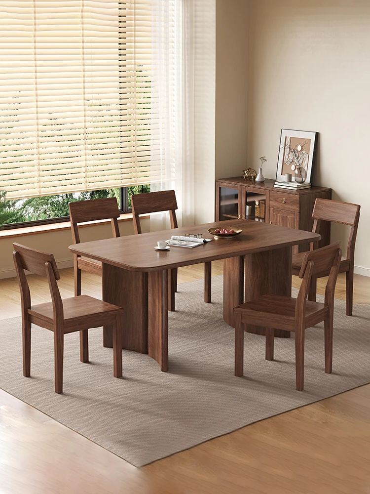 2025年最新!中式黑胡桃木製ダイニングテーブル&チェアセット - モダンでシンプルなデザイン、家庭にぴったりの高品質家具で食卓を彩りましょう!