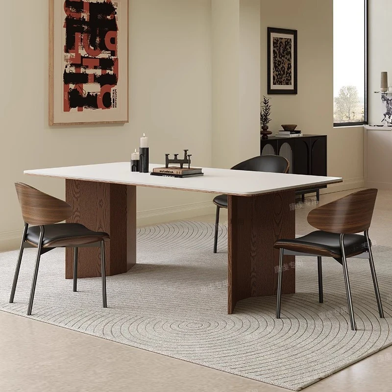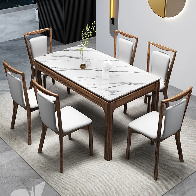 ウコン木製の岩板ダイニングテーブルセット - モダンな新中式デザイン、実用的な長方形テーブル。小さなリビングルームにもぴったりなスタイリッシュで機能的な食卓。家庭用に最適!