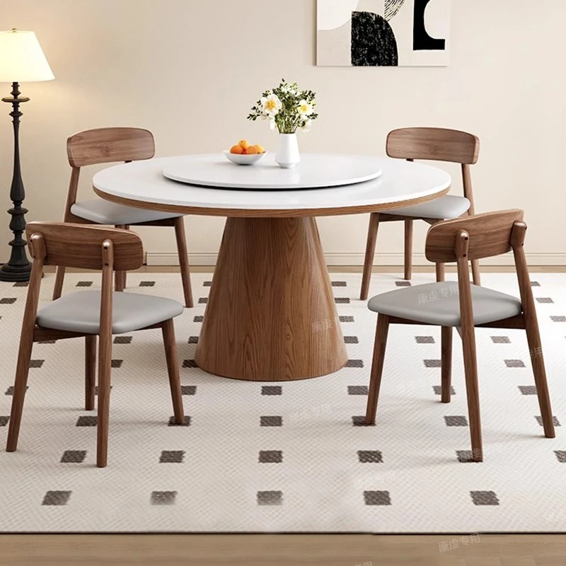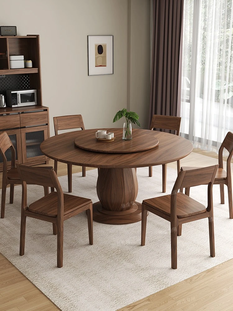 新中式ウーキン材質の実木製ダイニングテーブルセット|家族団らんにぴったりなラウンドテーブル|大きな回転式テーブルで、食事をもっと楽しく!
