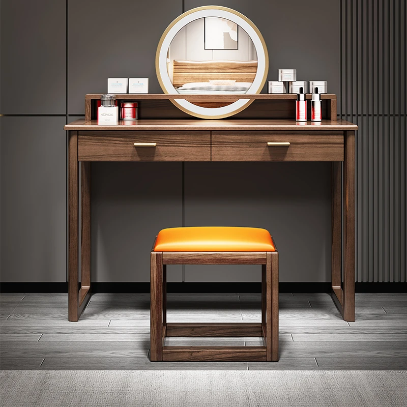 新中式ウッドウッド化粧台&スツールセット - シンプルでラグジュアリーなデザイン、収納力抜群の実用家具!おしゃれな家の必需品!