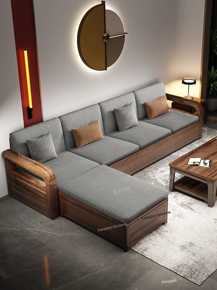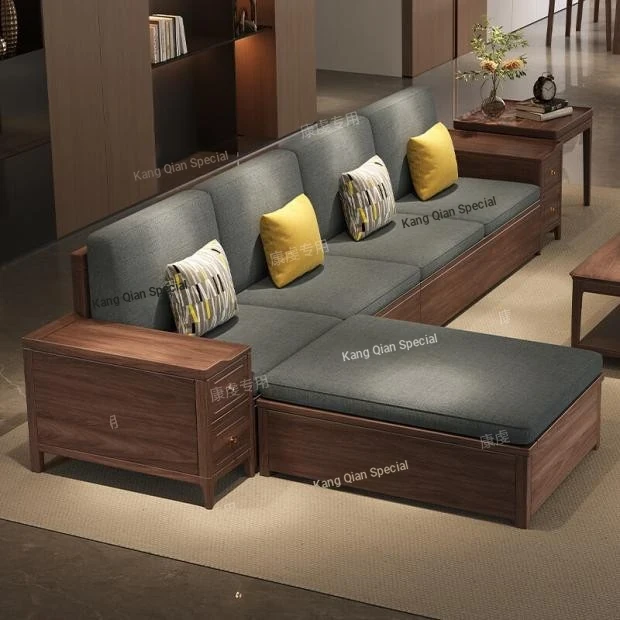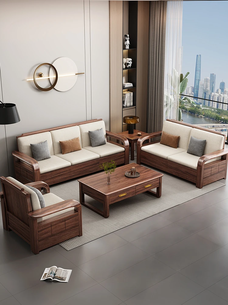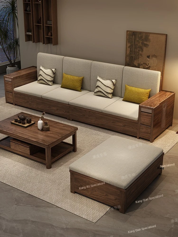 Modern Simple Black Walnut Solid Wood Sofa - New Chinese Style Living Room Furniture Set for Small Spaces with Storage Solutions