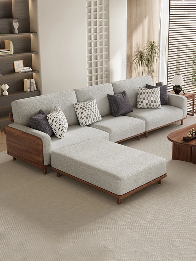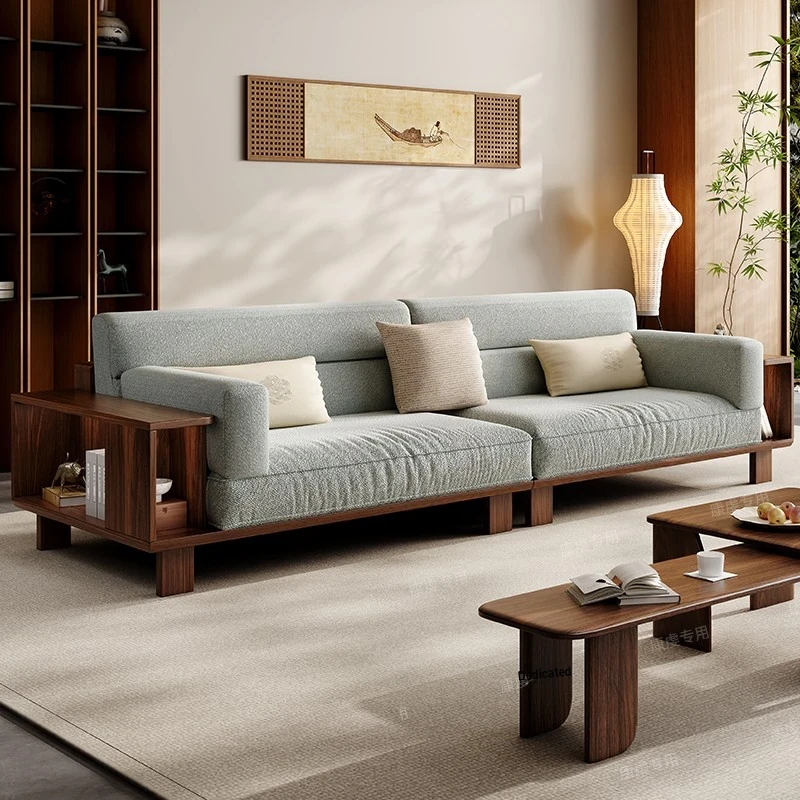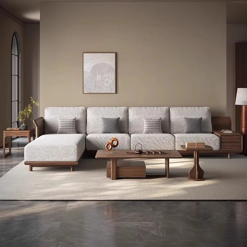 Modern Minimalist New Chinese Style Sofa Set - Walnut Solid Wood & Fabric Combination for Luxury Villas and Living Rooms