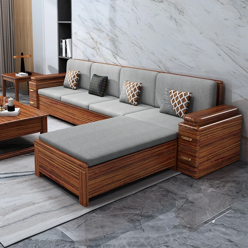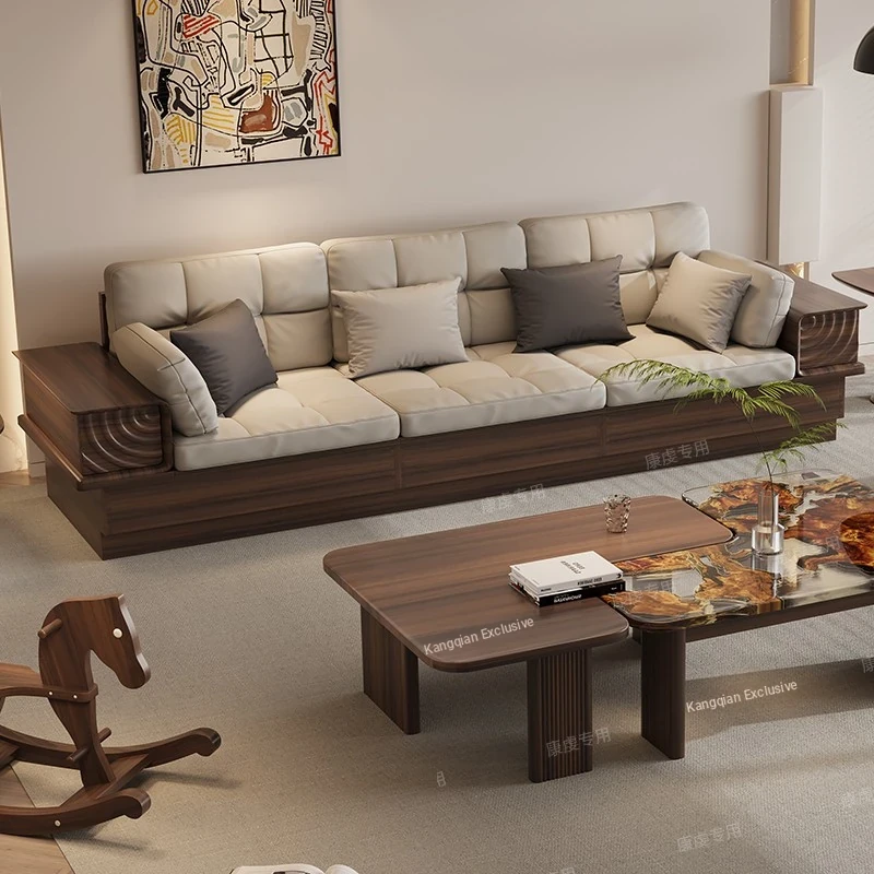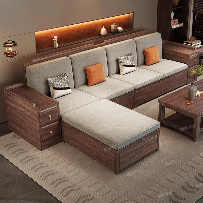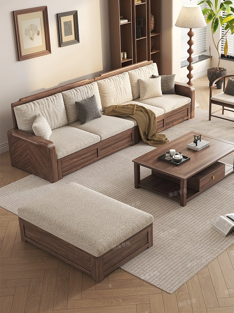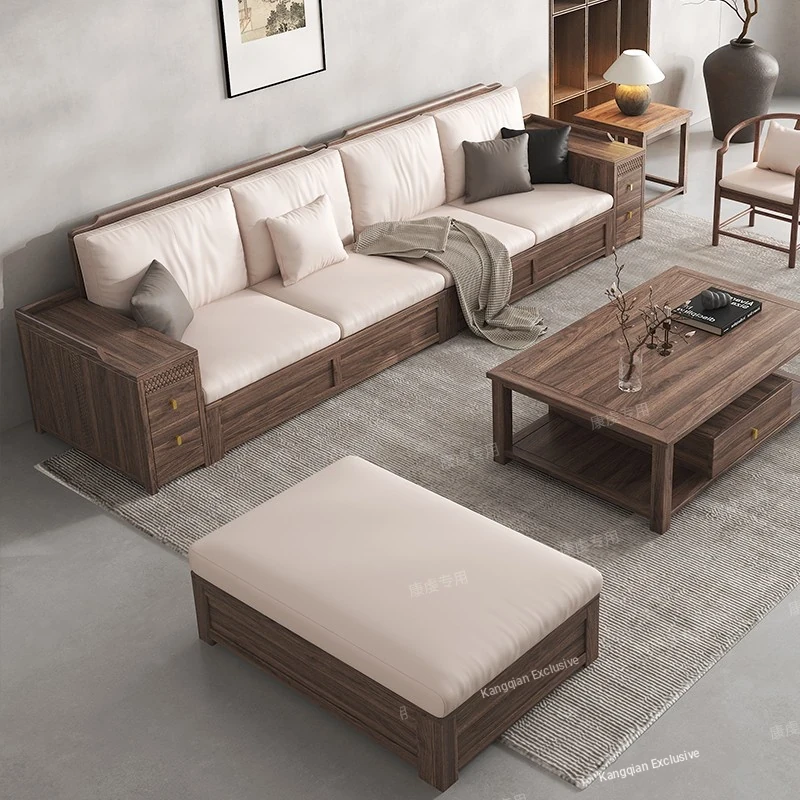 Chinese Walnut Solid Wood Sofa Set - Versatile Home Furniture for All Seasons, Perfect for Villas and Living Rooms with Ample Storage Options.