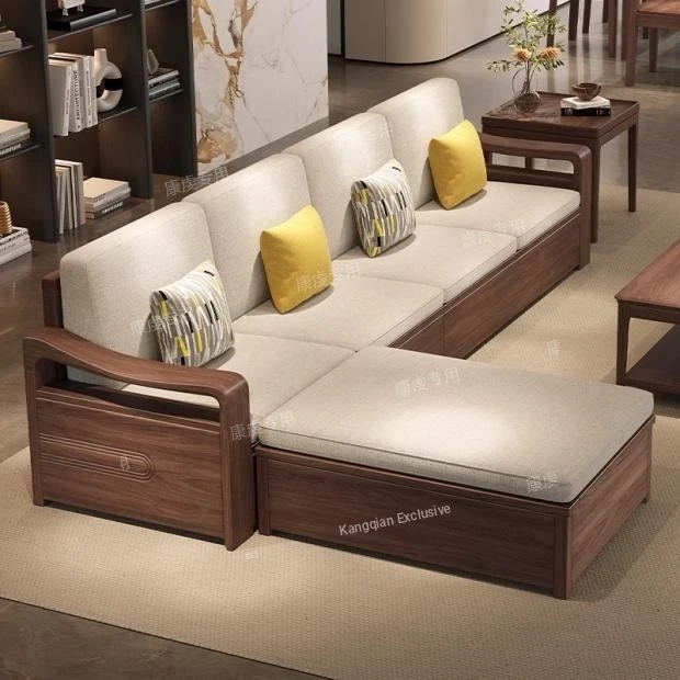 2025 New Arrival Solid Black Walnut Wood Sofa for Small Living Rooms - All Solid Wood Design with Storage Solution for Home Use