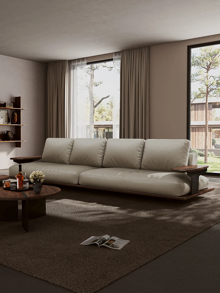Modern Minimalist Solid Wood Sofa in Black Walnut - Versatile Design for All Seasons, Perfect for Spacious Homes