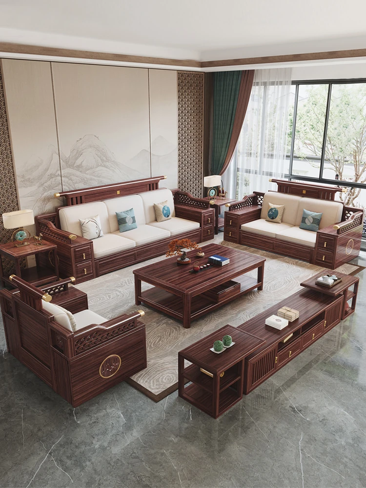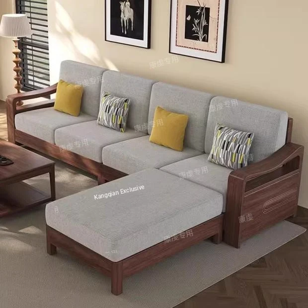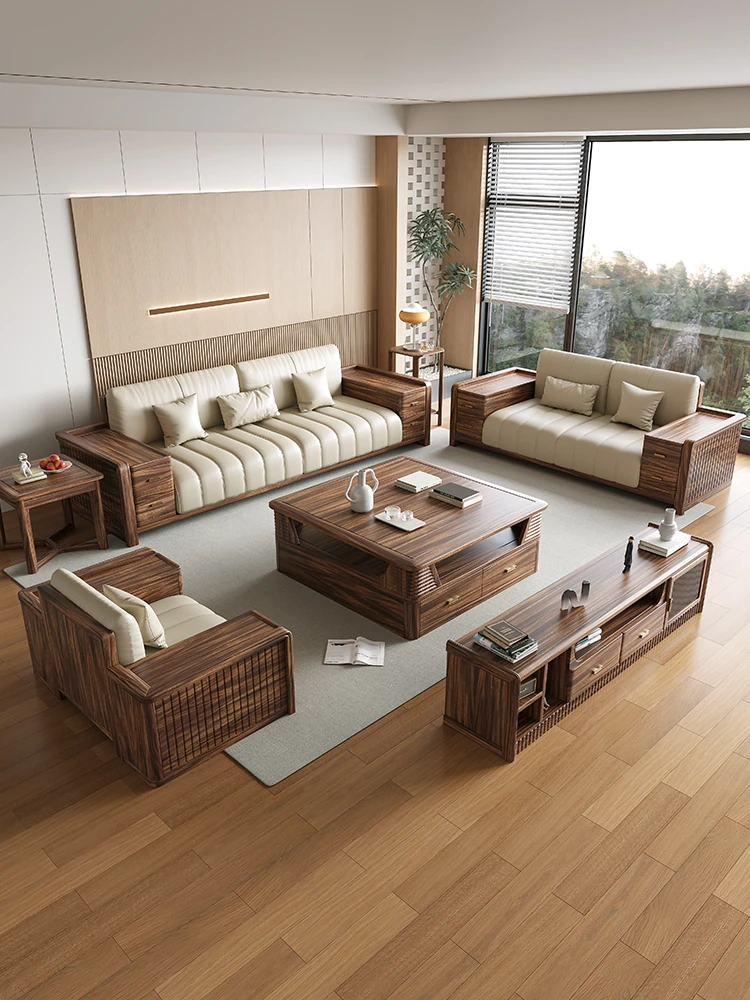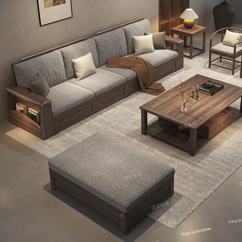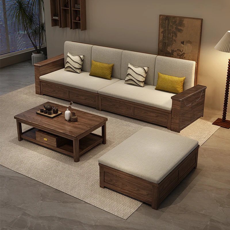 2025 New Model Chinese Black Walnut Solid Wood Sofa - Space-Saving 4-Seater for Small Living Rooms with Storage Solutions