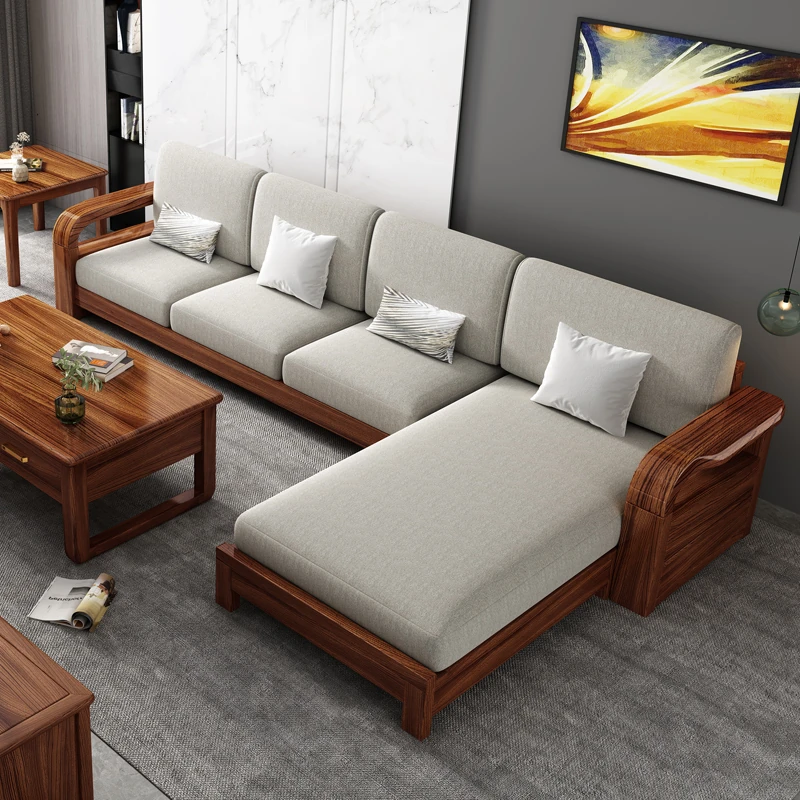 Modern Chinese Style Solid Wood Sofa Set - Walnut Wood Living Room Sofa for Spacious Homes, Minimalist Design