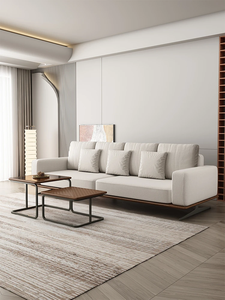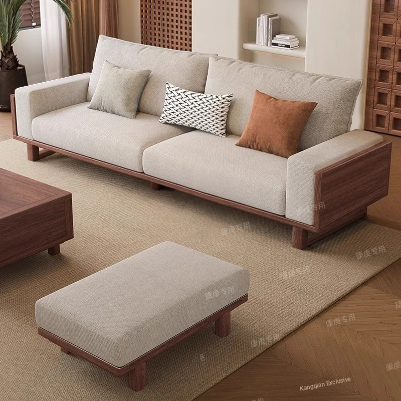 Modern Minimalist Solid Wood Sofa Set in Black Walnut - Stylish and Comfortable Fabric Sofa for Living Room Home Decor