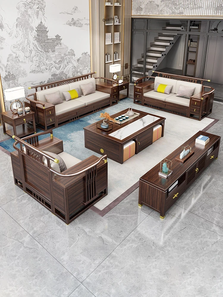 Premium Modern New Chinese Style Solid Wood Sofa Set for Small and Large Living Rooms - Elegant High-Box Storage Sofa for a Chic and Minimalist Touch