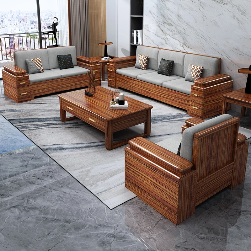 Solid Wood Sofa Set in Wenge Finish - Versatile Winter and Summer Design for Small Living Rooms - New Chinese Style Full Solid Wood Corner Storage Furniture