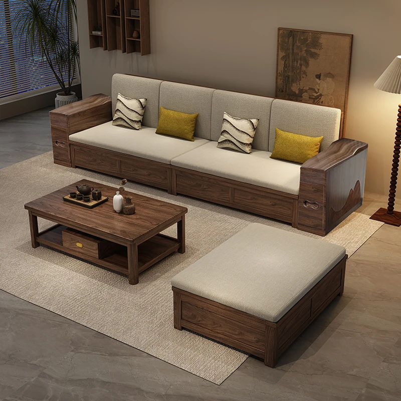 2024 New Arrival: Chinese Black Walnut Solid Wood Sofa for Home - Versatile Storage Solution for Small Living Rooms, Perfect for Year-Round Use