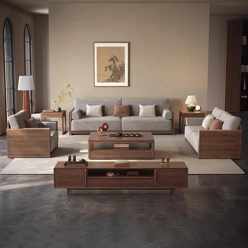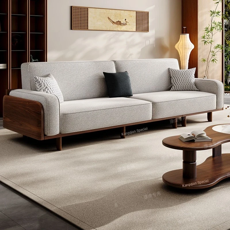 Modern Minimalist New Chinese Style Solid Walnut Wood Sofa Set - Elegant Upholstered Sofa for Living Room, Perfect for Home Use
