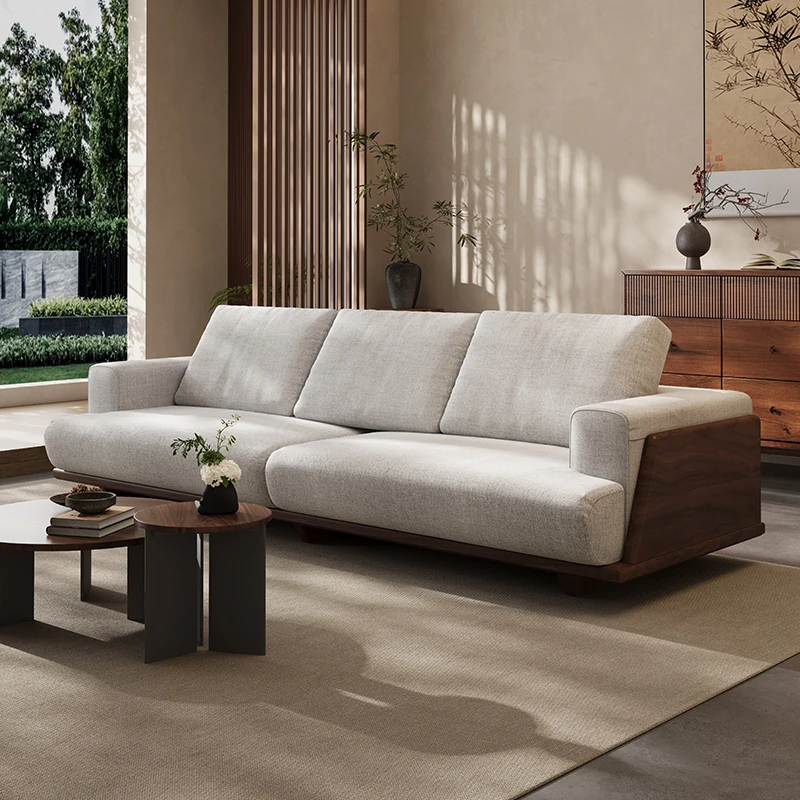 Modern Minimalist Cotton-Linen Sofa with Black Walnut Solid Wood Frame - 2025 New Design for Small Apartments and Spacious Villas