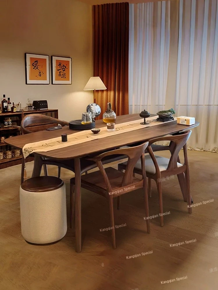 Premium North American Black Walnut Solid Wood Dining Table - Minimalist Japanese-Style Rectangular Table for Dining, Study, and Tea Time - Perfect for Modern Homes