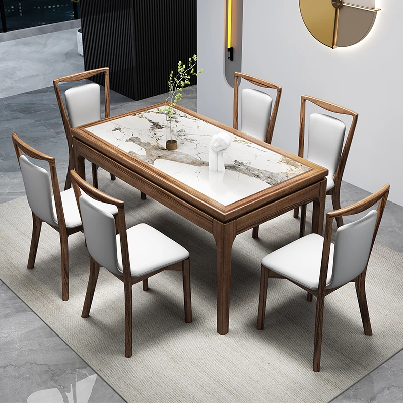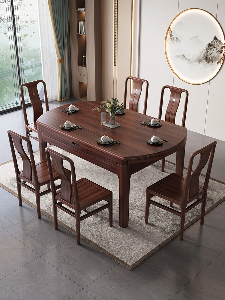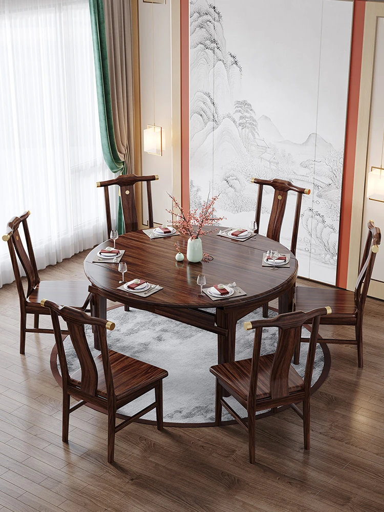 Elegant Blackwood New Chinese Style Solid Wood Dining Table and Chair Set - Versatile Square and Round Design, Expandable and Foldable for Small Living Spaces, Perfect for Home Use