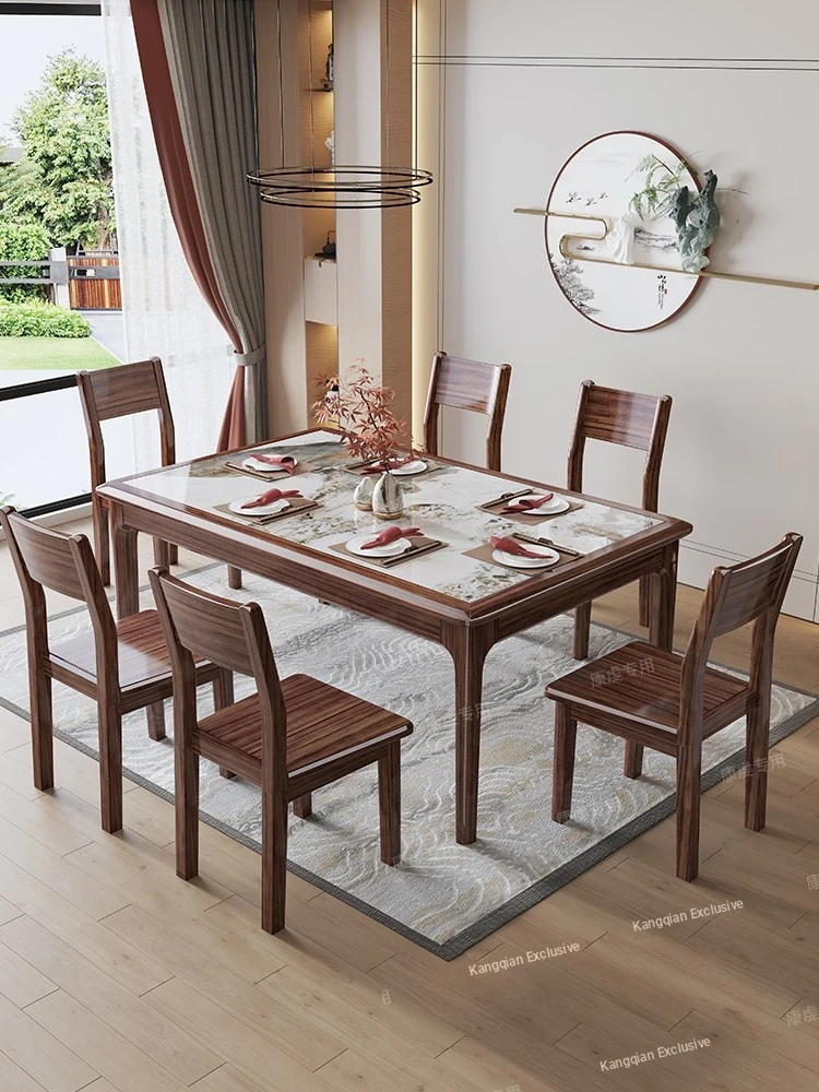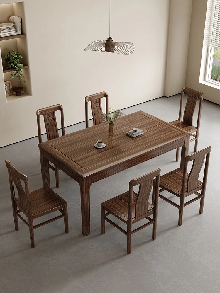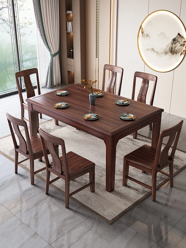 Elegant New Chinese Style Black Wood Solid Wood Dining Table - Rectangular Full Solid Wood Table Set for Small Spaces, Perfect for Family Meals