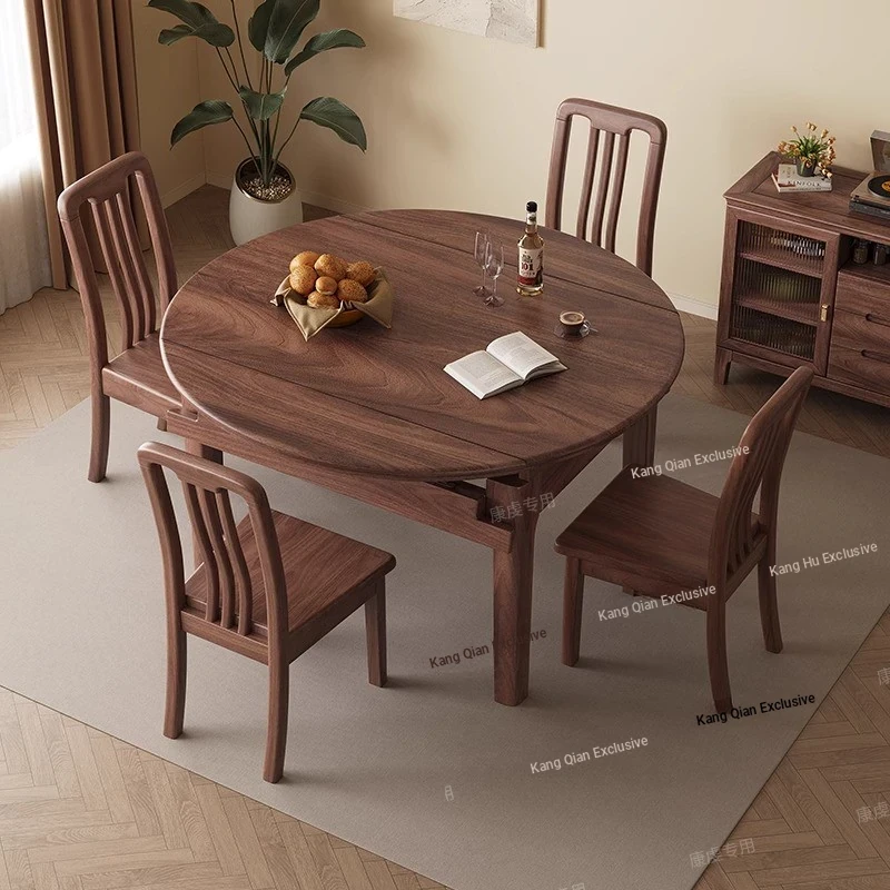 Black Walnut Solid Wood Folding Dining Table for Home - Versatile Round and Square Design, Ideal for Small Spaces, Expandable for Family Meals