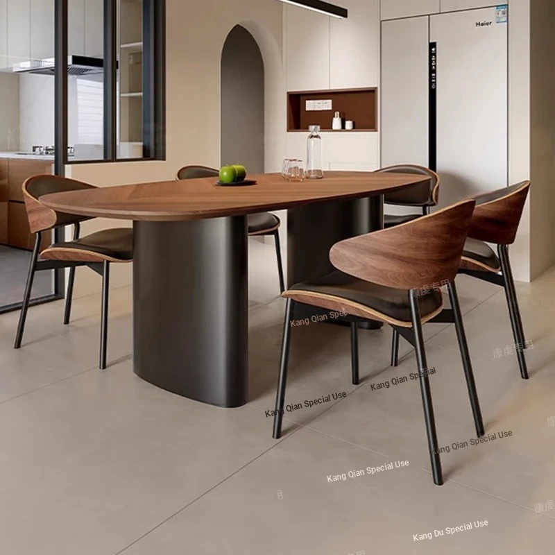 2025 New French Vintage Modern Minimalist Oval Dining Table and Chairs Set in Solid Black Walnut Wood - Perfect for Home Décor