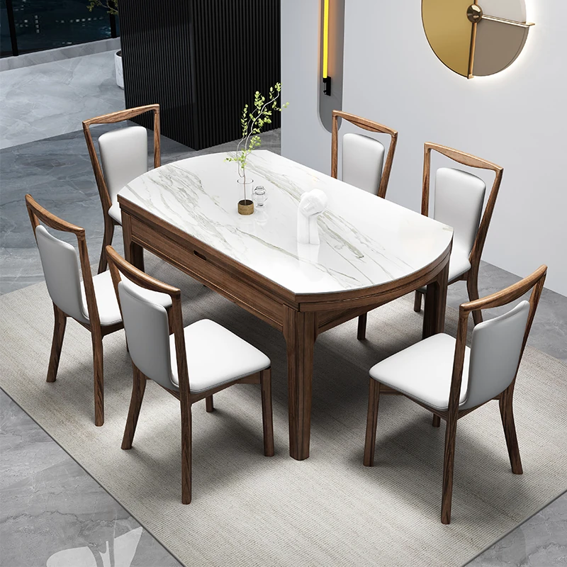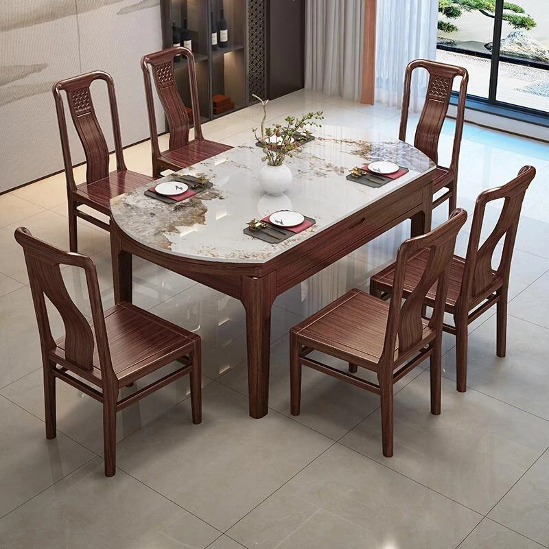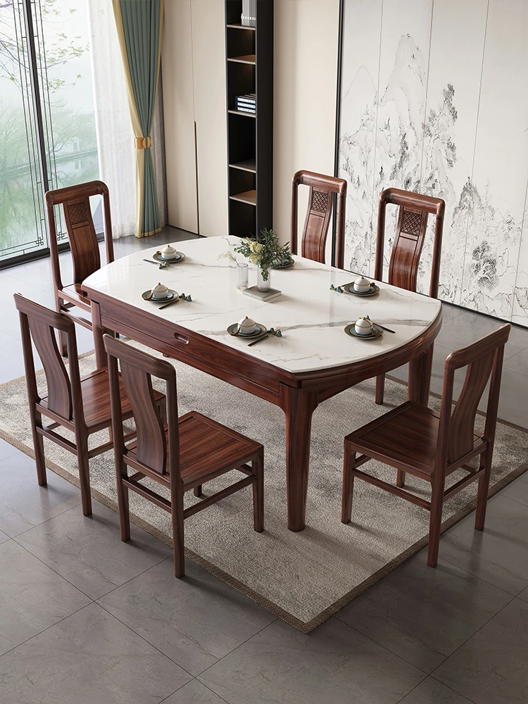 Elegant New Chinese Style Solid Blackwood Dining Table Set – Versatile Folding Table with Round and Square Options, Perfect for Home Use, Space-Saving Design, and Expandable for Gatherings.