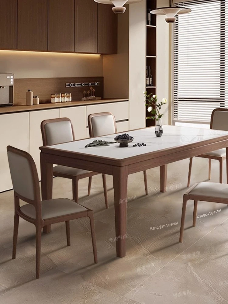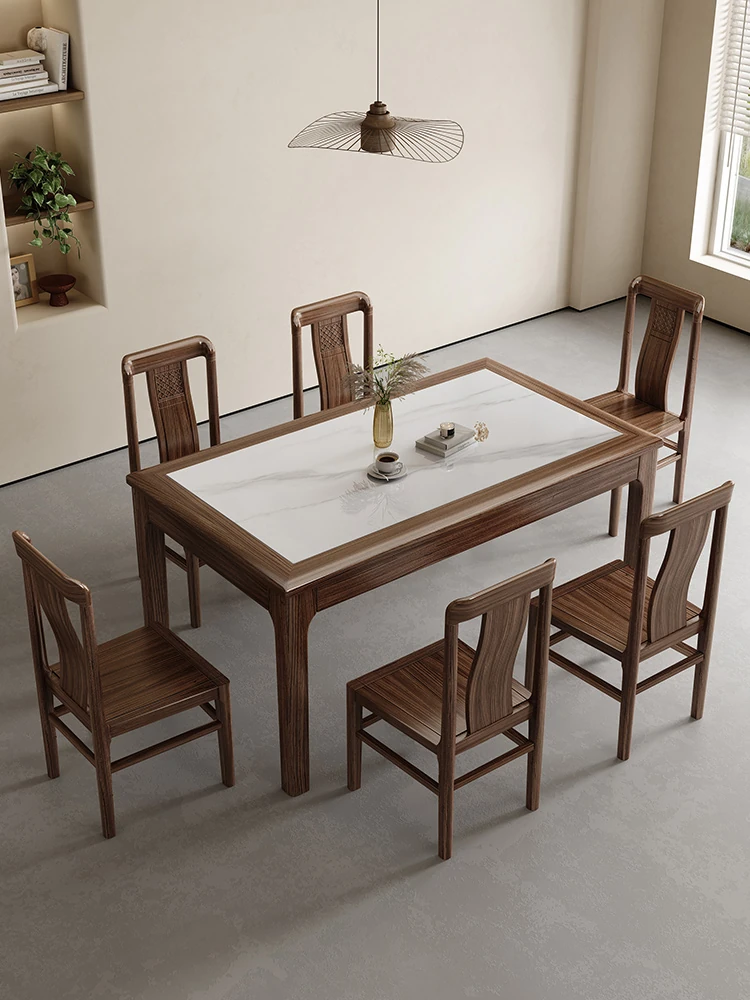 Elegant New Chinese Style Black Walnut Solid Wood Dining Table Set - Modern Rectangular Design for Small Spaces, Perfect for Luxurious Dining Experiences