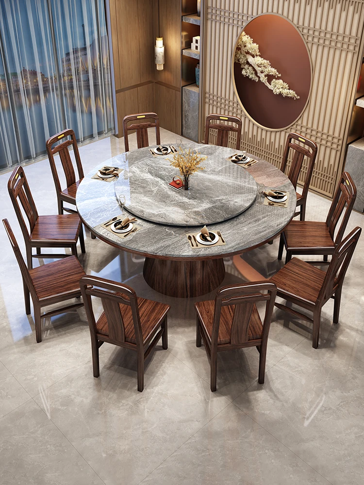Elegant New Chinese Style Solid Blackwood Round Dining Table - High-End 1.8m Luxury Dining Table with Stone Surface for Home Use