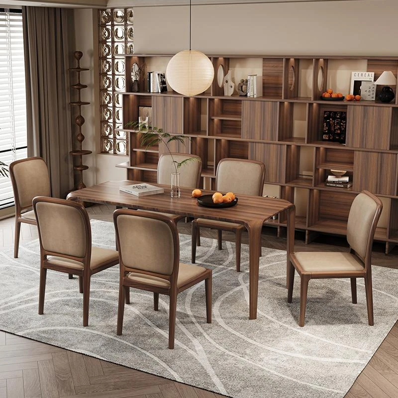 Rectangular Solid Black Walnut Dining Table - Elegant Nordic Style with Chinese Vintage Touch - Complete Set with Chairs for a Cozy Dining Experience
