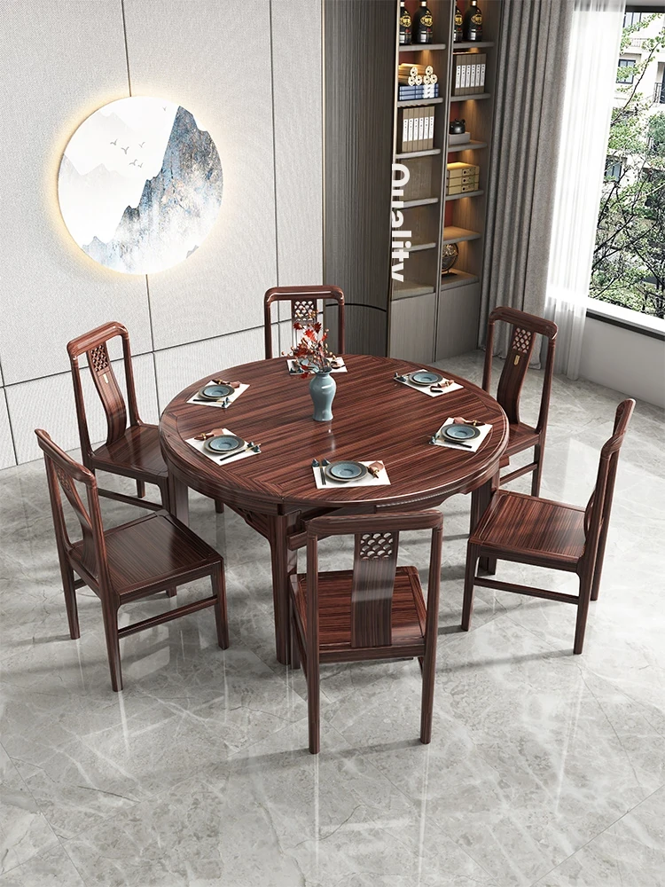 Stylish New Chinese-Style Solid Blackwood Dining Table with Expandable and Folding Features for Small Spaces - Versatile Round Table for Home Use