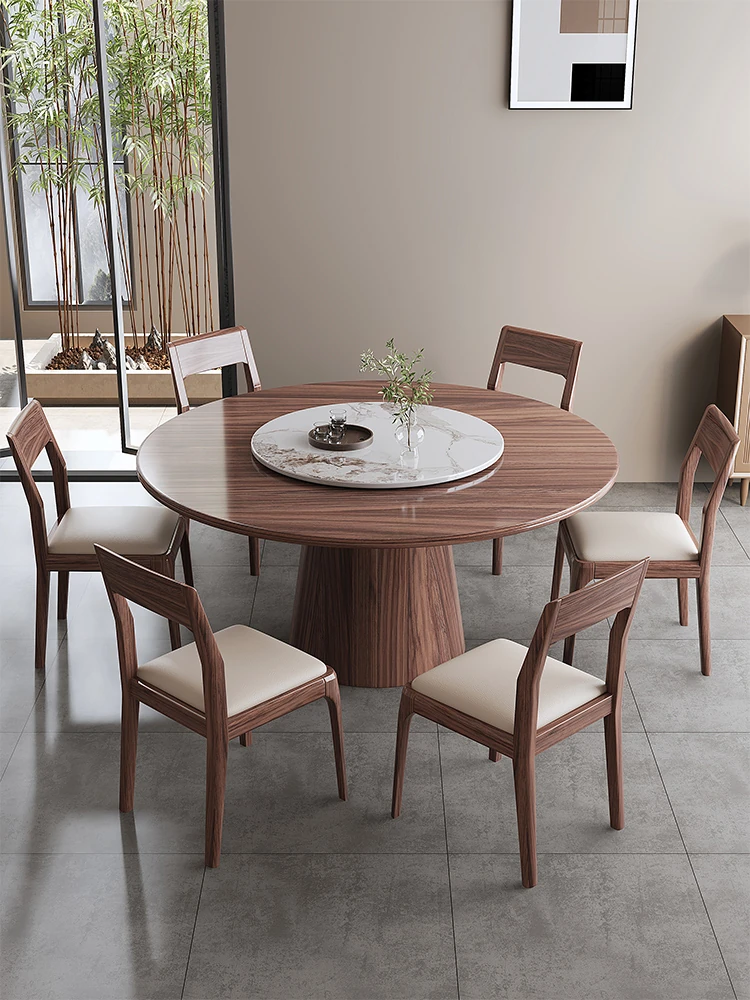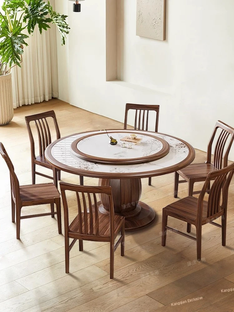 2025 New Black Walnut Solid Wood Dining Table - Stylish Round Table with Rock Slab Top for Home Use, Perfect for Family Gatherings and Dining Experiences