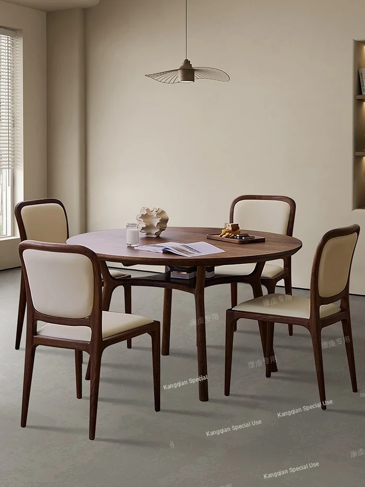 Modern Minimalist Solid Black Walnut Dining Table and Chair Set - Elegant Round Table for Multiple Diners, Perfect for Home Living Rooms