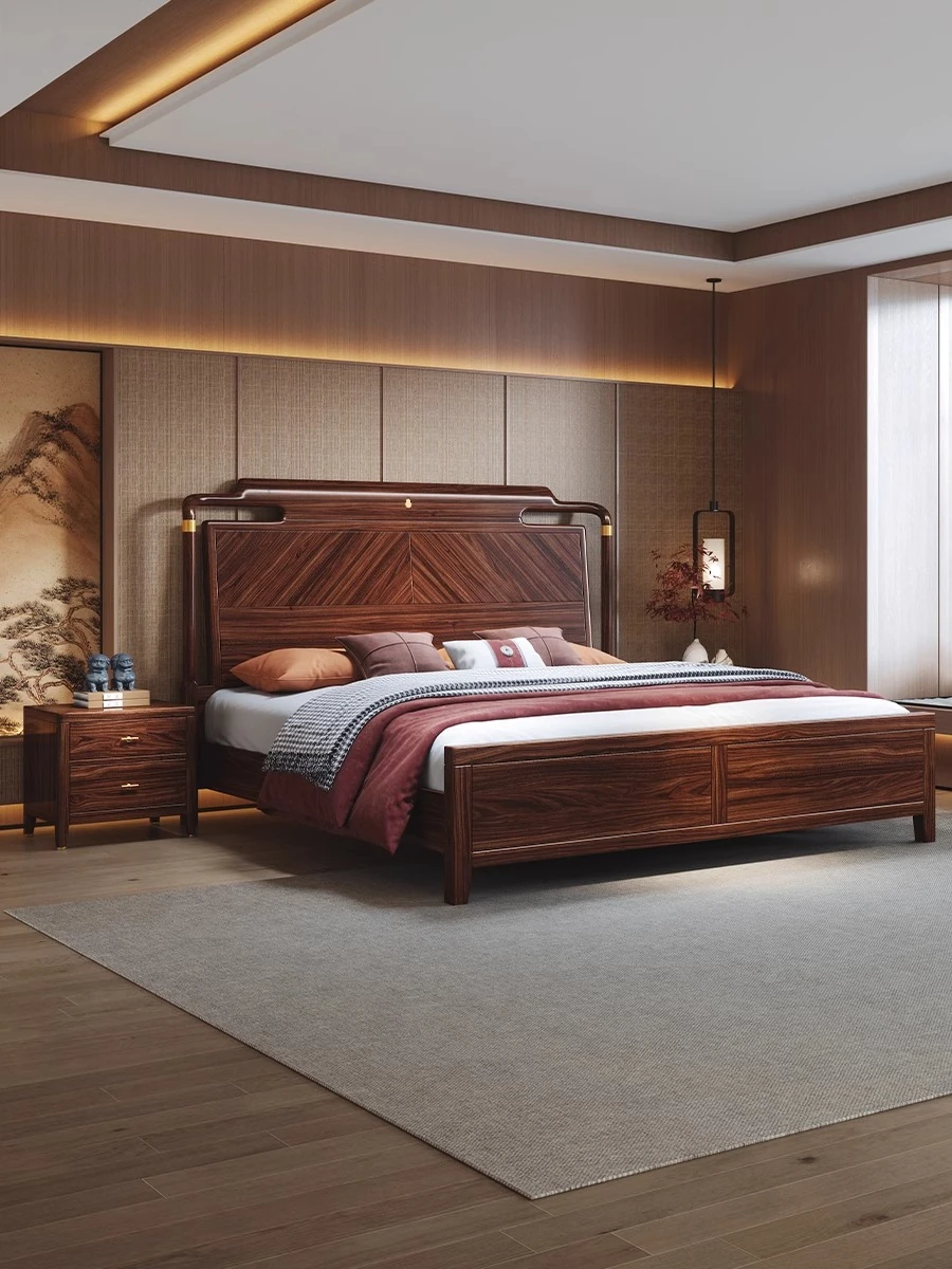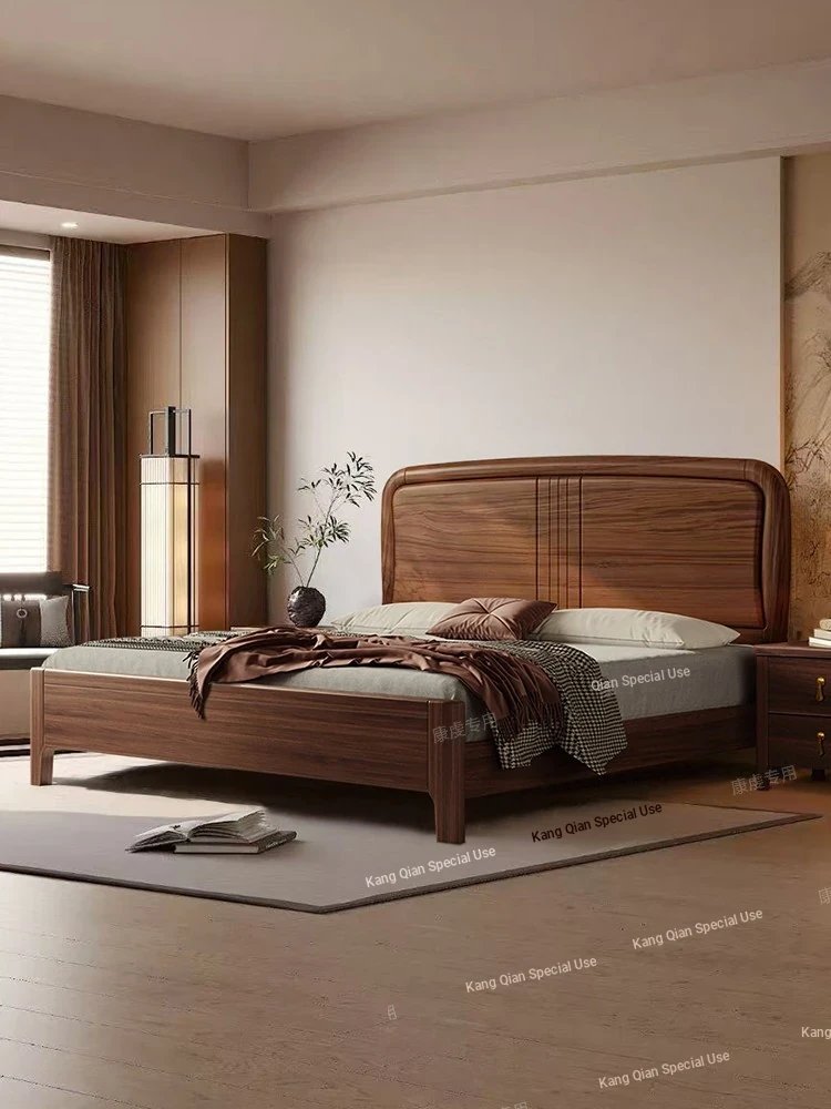 New Modern Chinese Style Black Walnut Solid Wood Double Bed - 1.8m & 1.5m Options for Cozy Master Bedroom, 2024 New Arrival, Minimalist Design