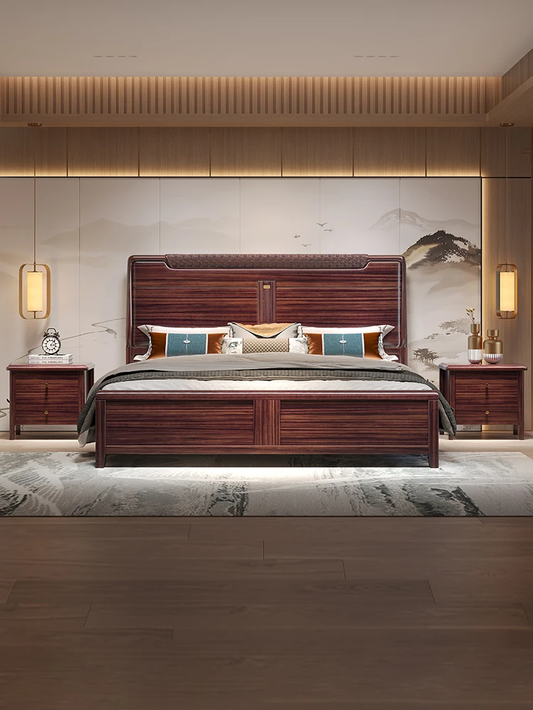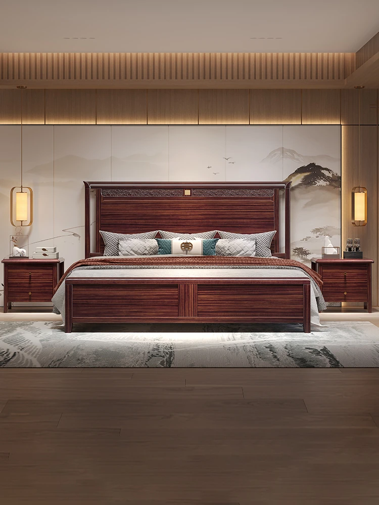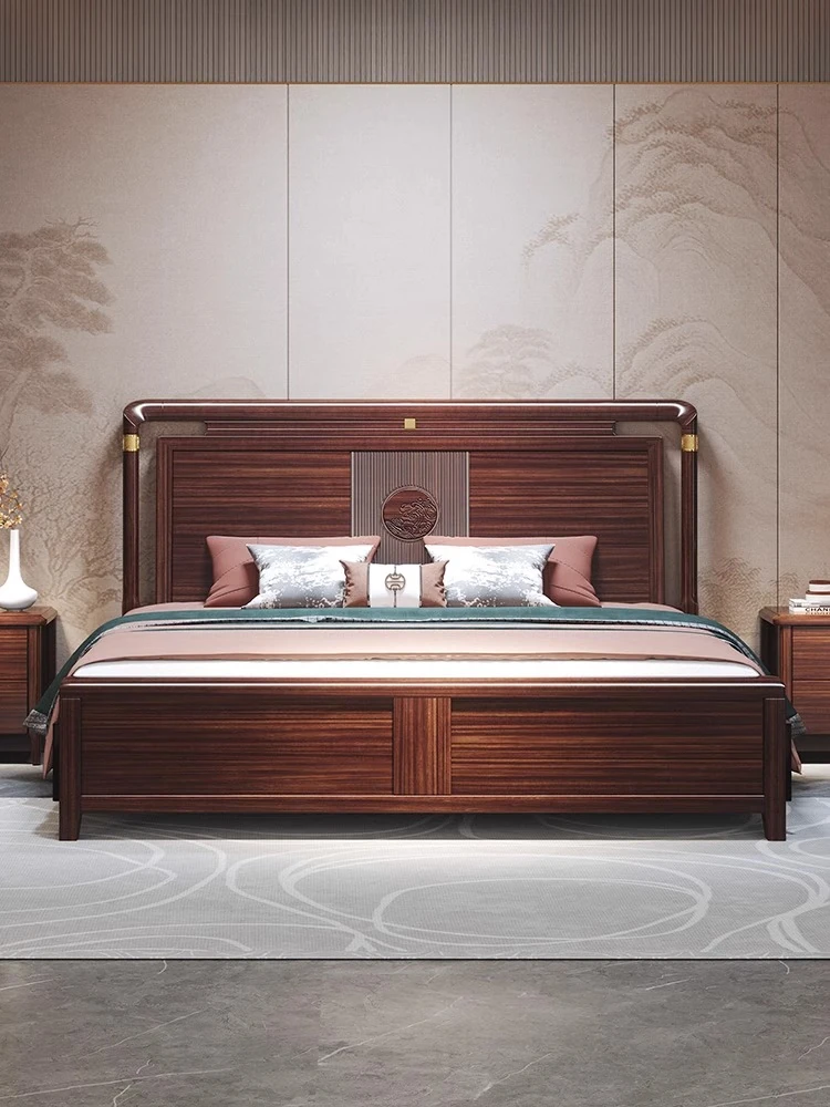Premium Wenge Wood New Chinese Style Bed - 1.5m & 1.8m Options, Modern Minimalist Design with Storage, Perfect for Master Bedrooms, Elegant and Durable Solid Wood Construction