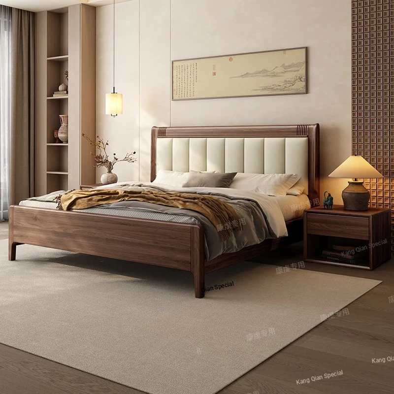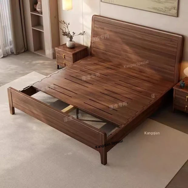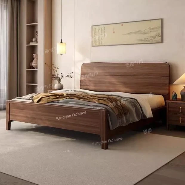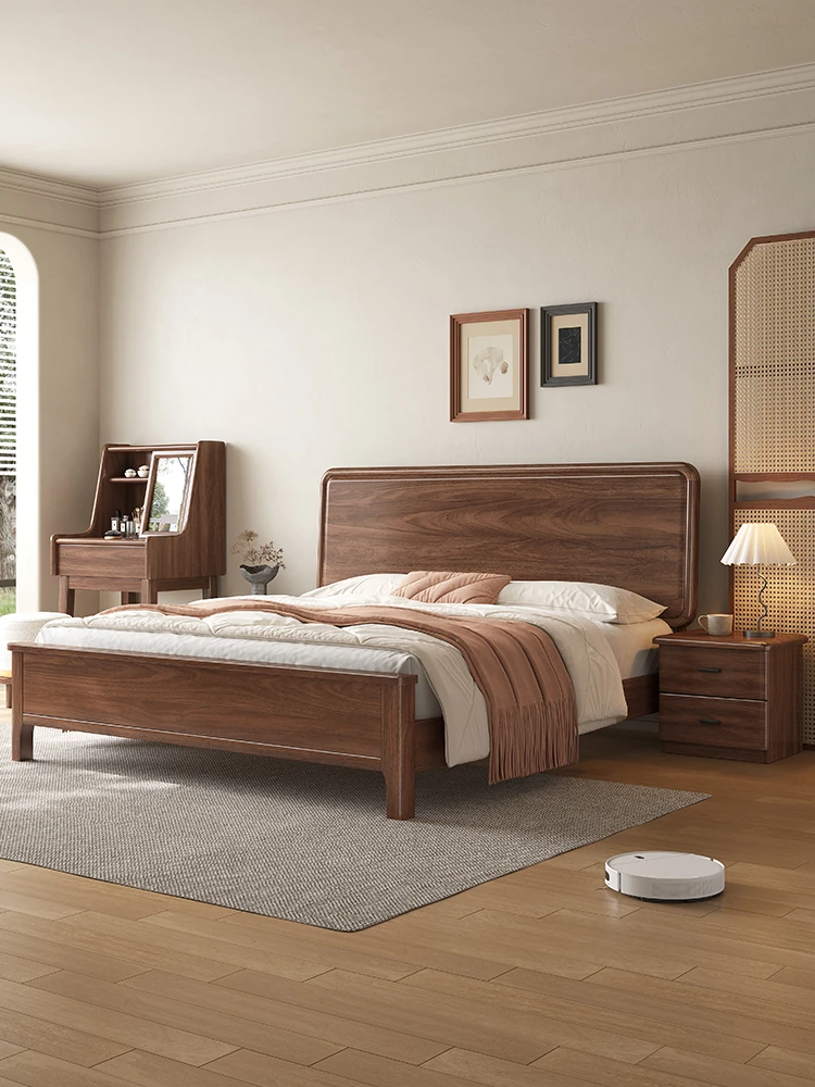 Solid Black Walnut Wood Bed - 1.8m Modern Minimalist Double Bed with Storage, Perfect for Master Bedrooms, New Chinese Style Wedding Bed, 1.5m Option Available