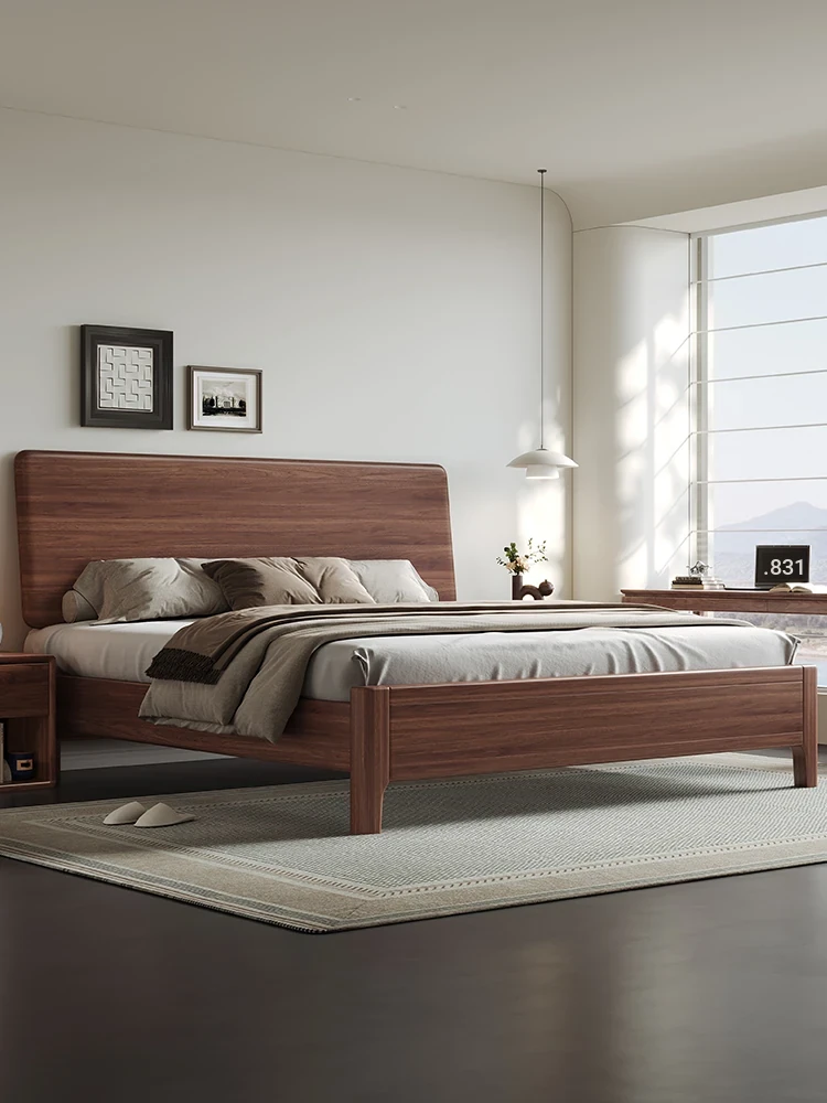 2024 New Modern Minimalist Solid Black Walnut Wood Bed - Factory Direct Sale Double Marriage Bed for Master Bedroom, Perfect for Home Use