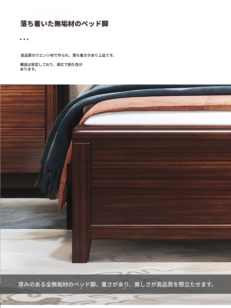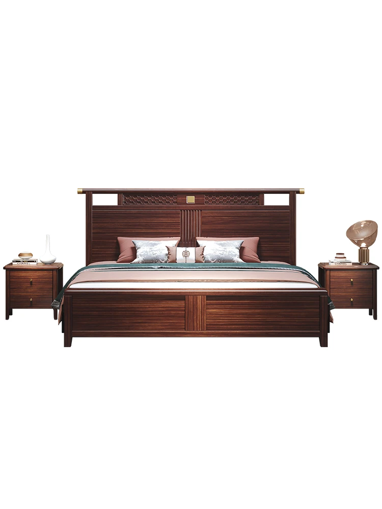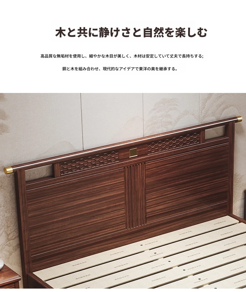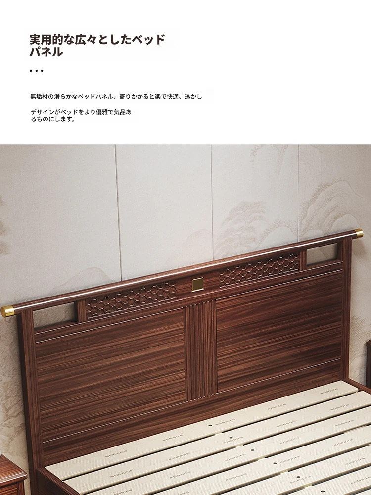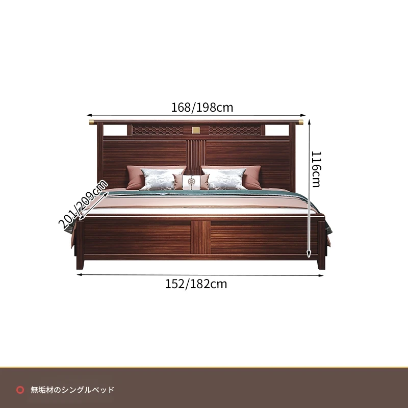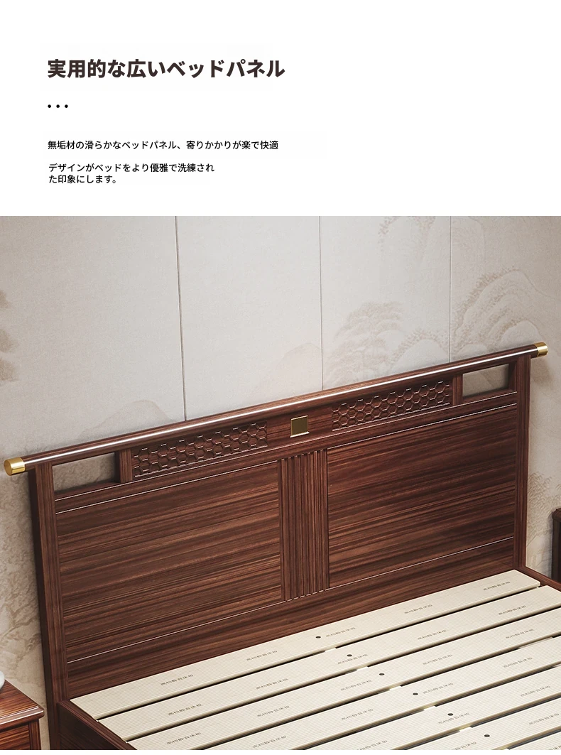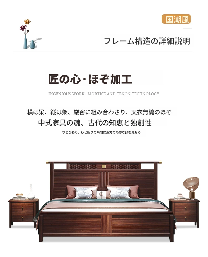 新中式ウッド調ウジン木製ベッド 1.8m ダブルベッド 主寝室用 官帽デザイン 大型ベッド 1.5m 現代的シンプル収納 婚礼用ベッドで、心地よい睡眠をお届けします。