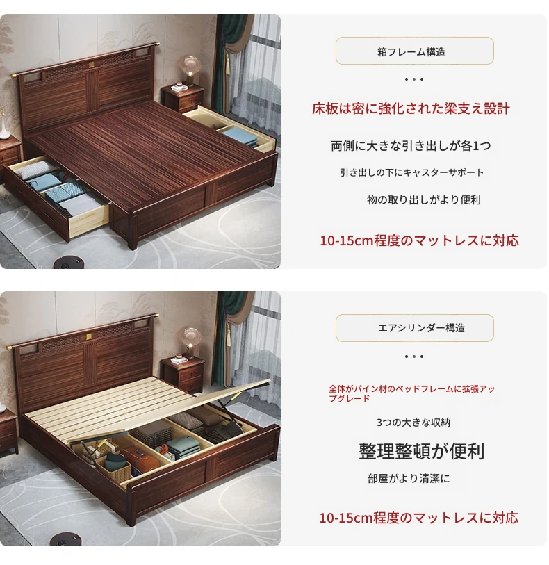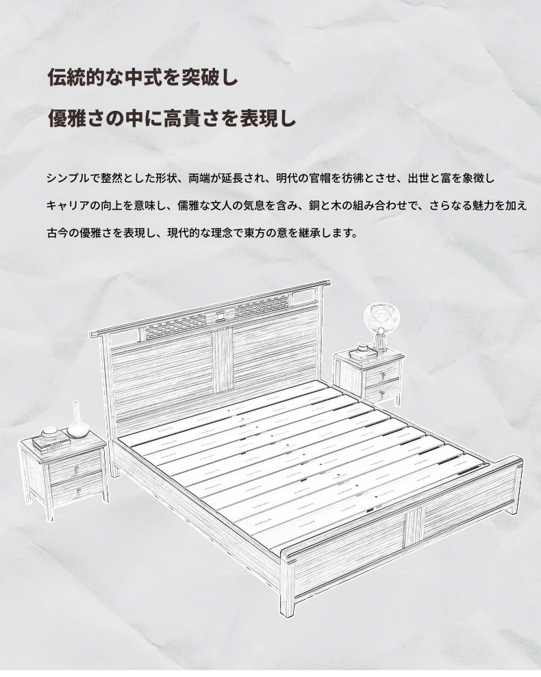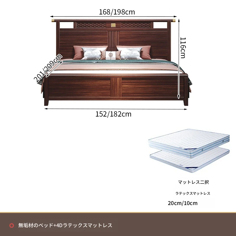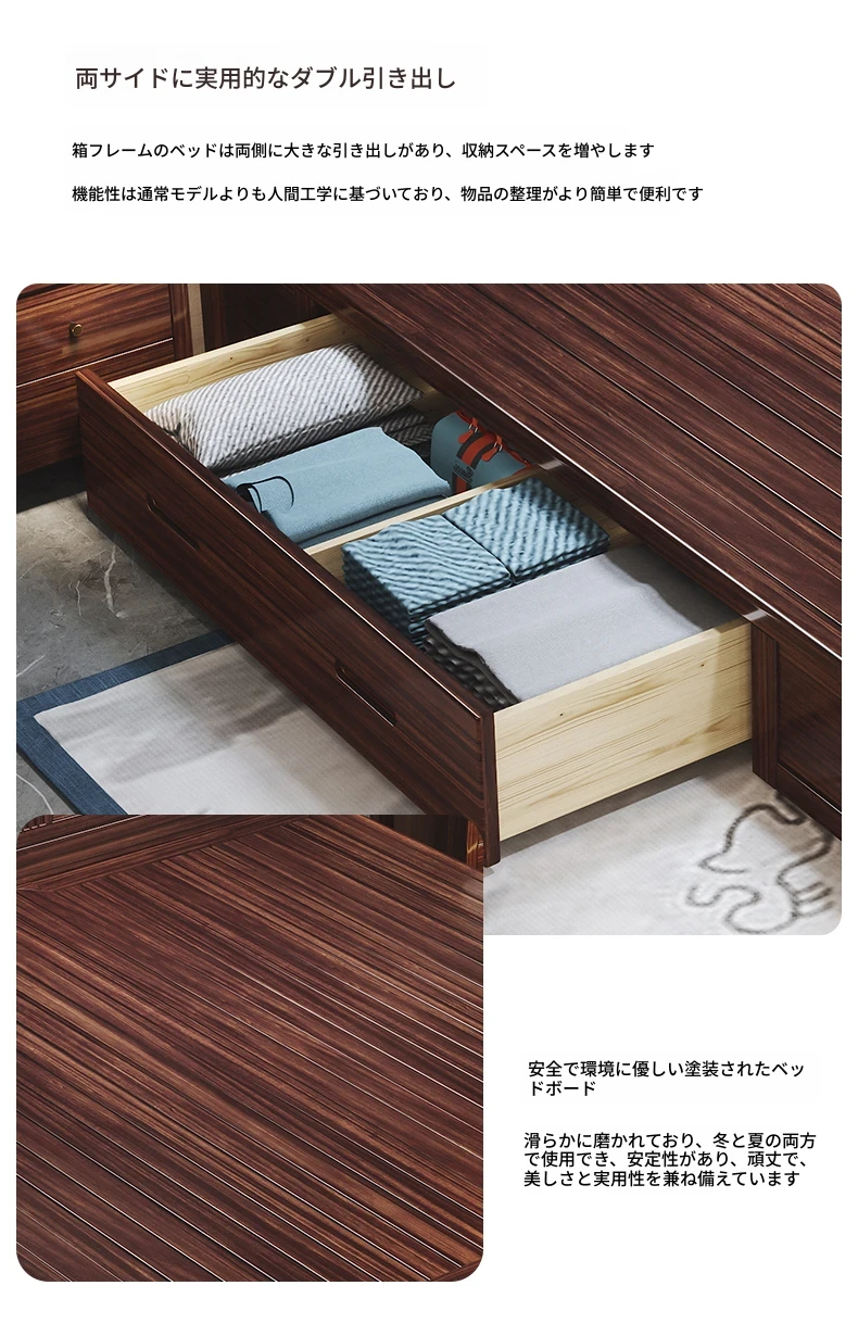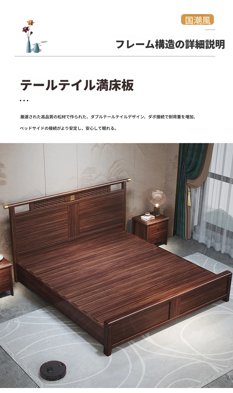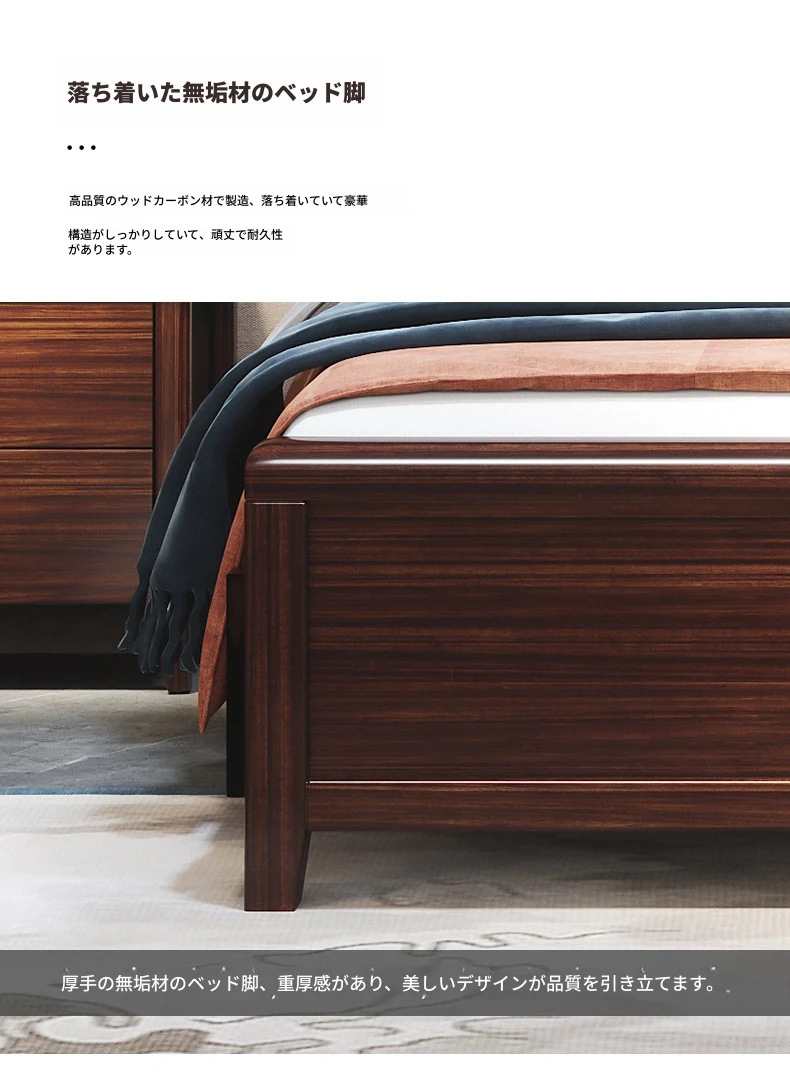 新中式ウッド調ウジン木製ベッド 1.8m ダブルベッド 主寝室用 官帽デザイン 大型ベッド 1.5m 現代的シンプル収納 婚礼用ベッドで、心地よい睡眠をお届けします。