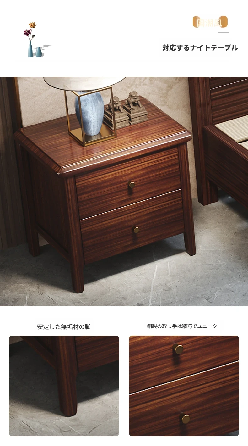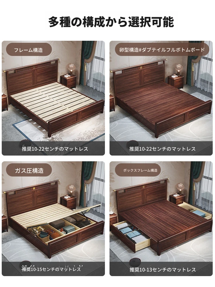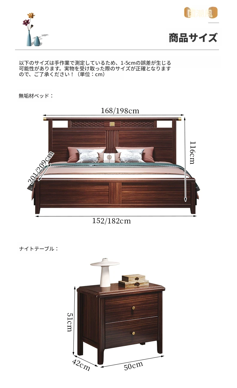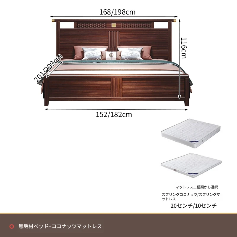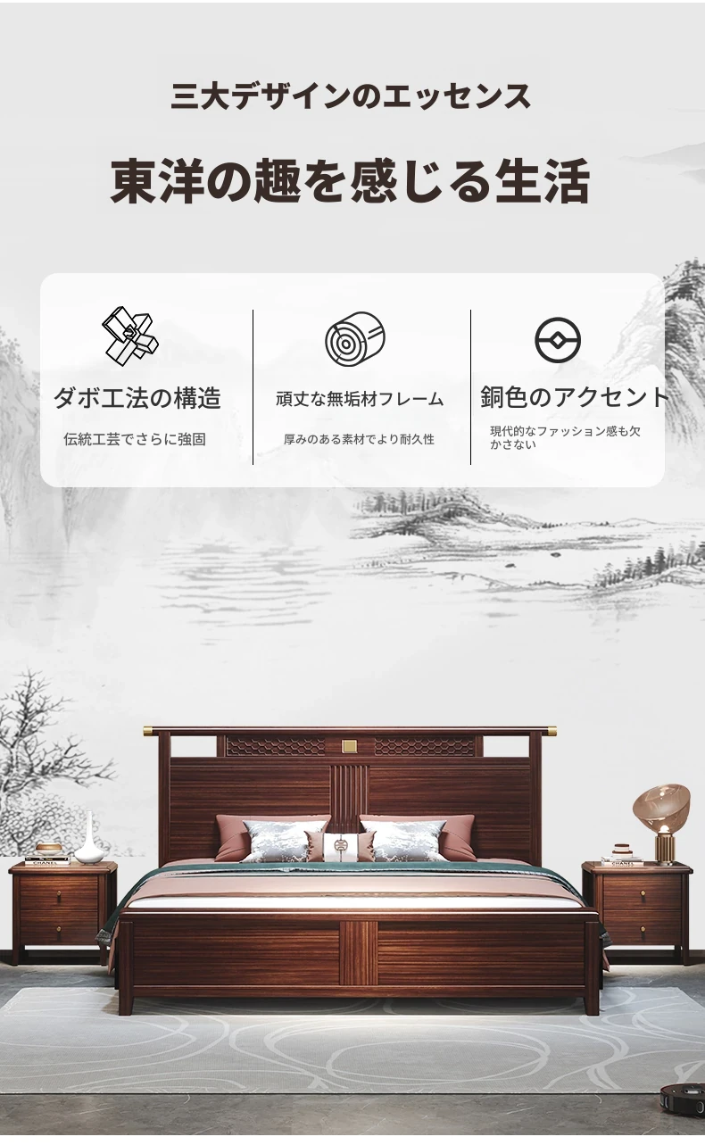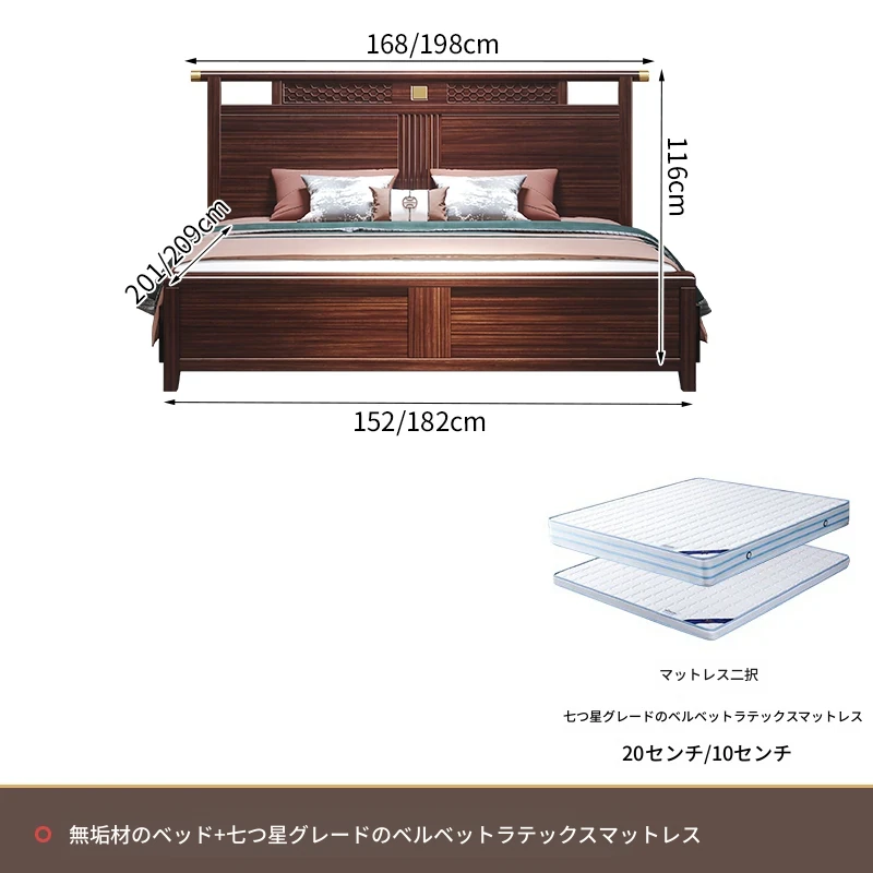 新中式ウッド調ウジン木製ベッド 1.8m ダブルベッド 主寝室用 官帽デザイン 大型ベッド 1.5m 現代的シンプル収納 婚礼用ベッドで、心地よい睡眠をお届けします。