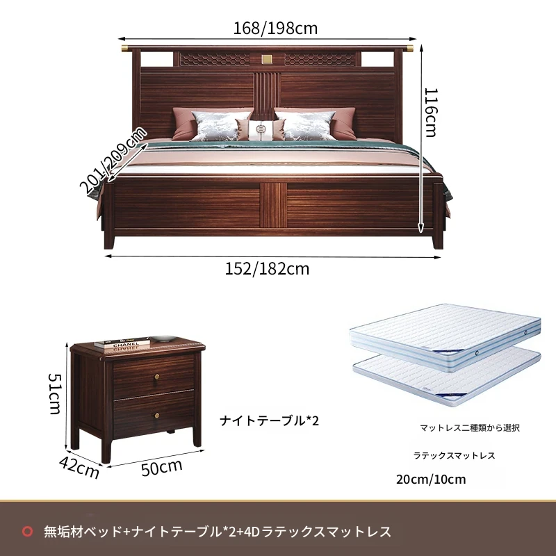 ベッド+ナイトテーブル*2+七つ星ベルベットラテックスマットレス