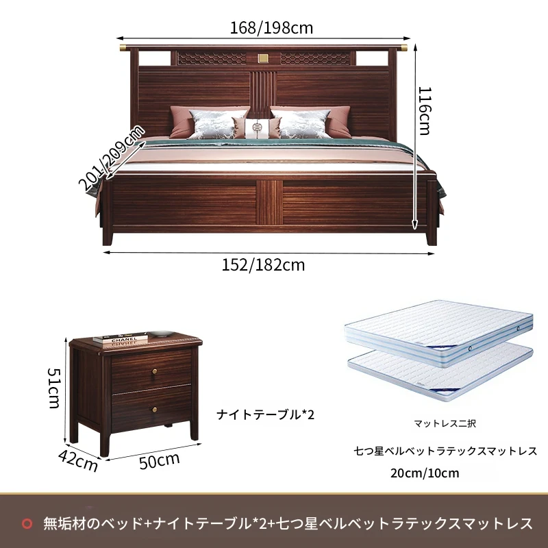 ベッド+ナイトテーブル*1+七つ星ベルベットラテックスマットレス