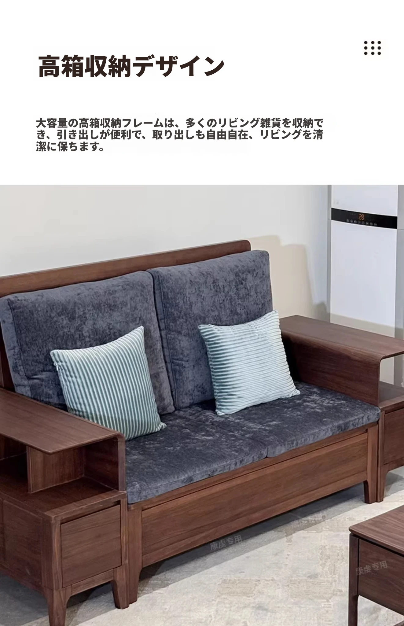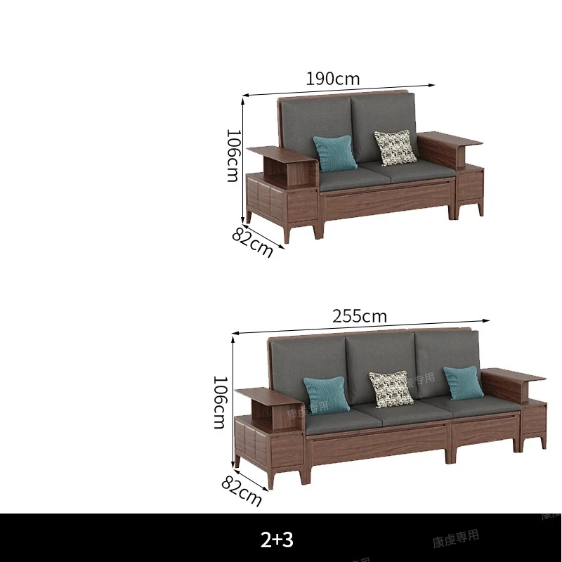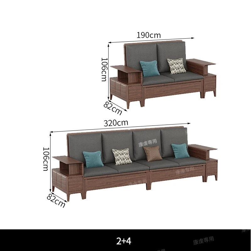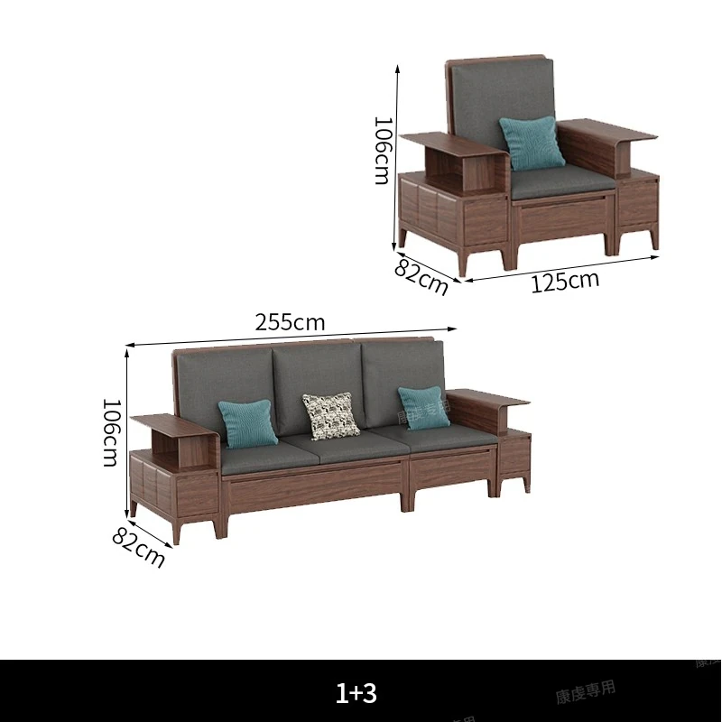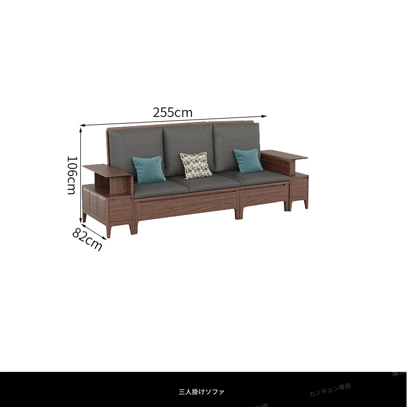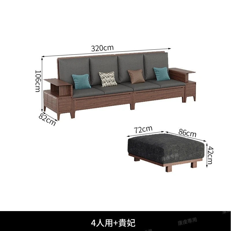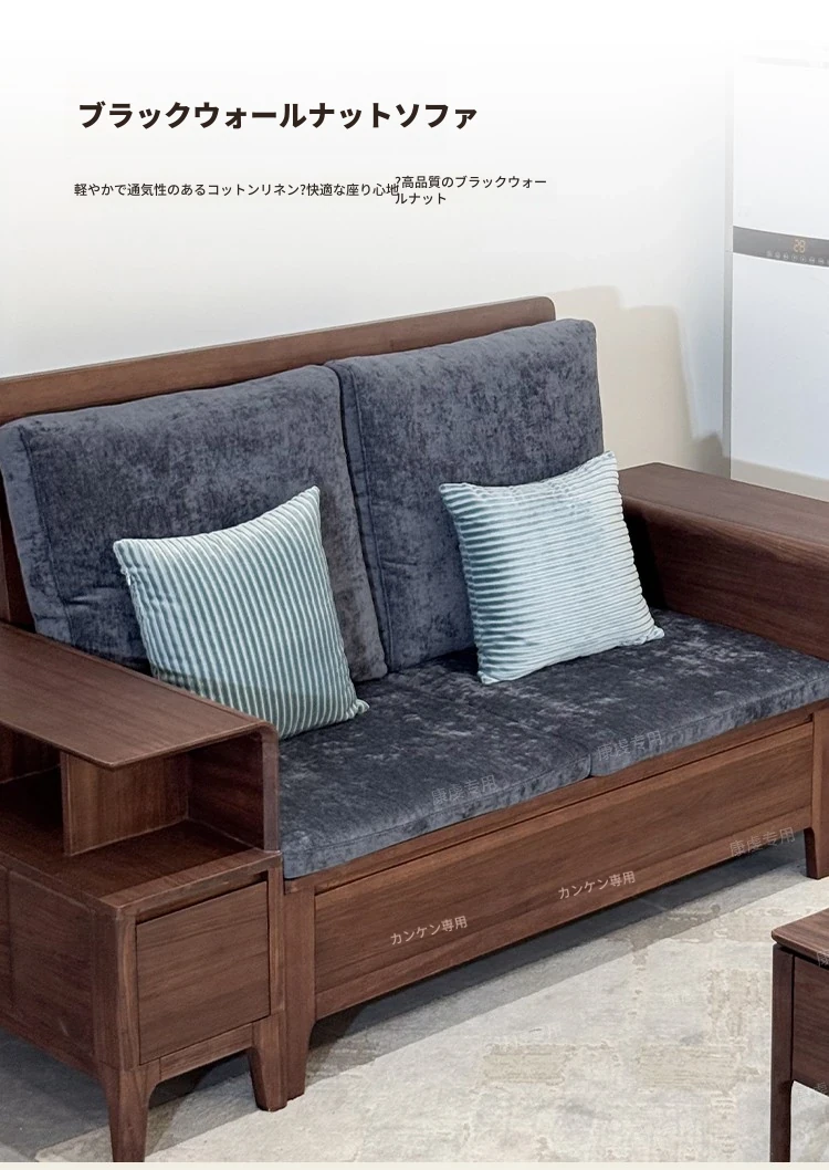 モダンシンプルなブラックウォールナット無垢材ソファセット - 家庭にぴったりな中華スタイルのストレートソファで、リビングを洗練された空間に変えます!